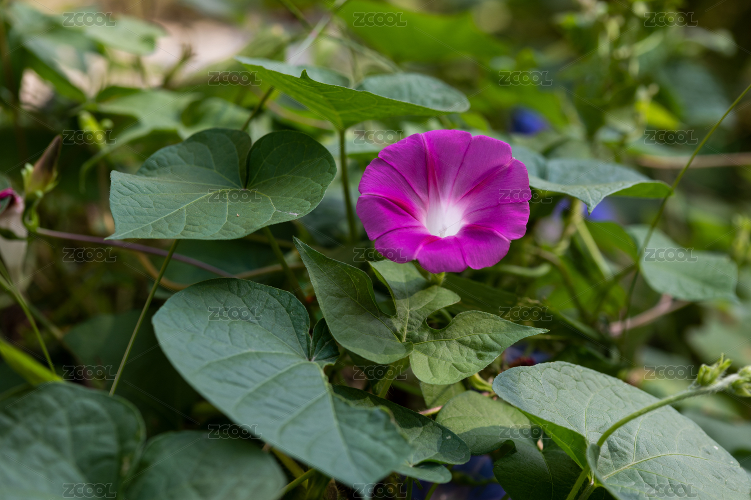 攀緣生長(zhǎng)在老樹根巖石上的勒杜鵑三角梅