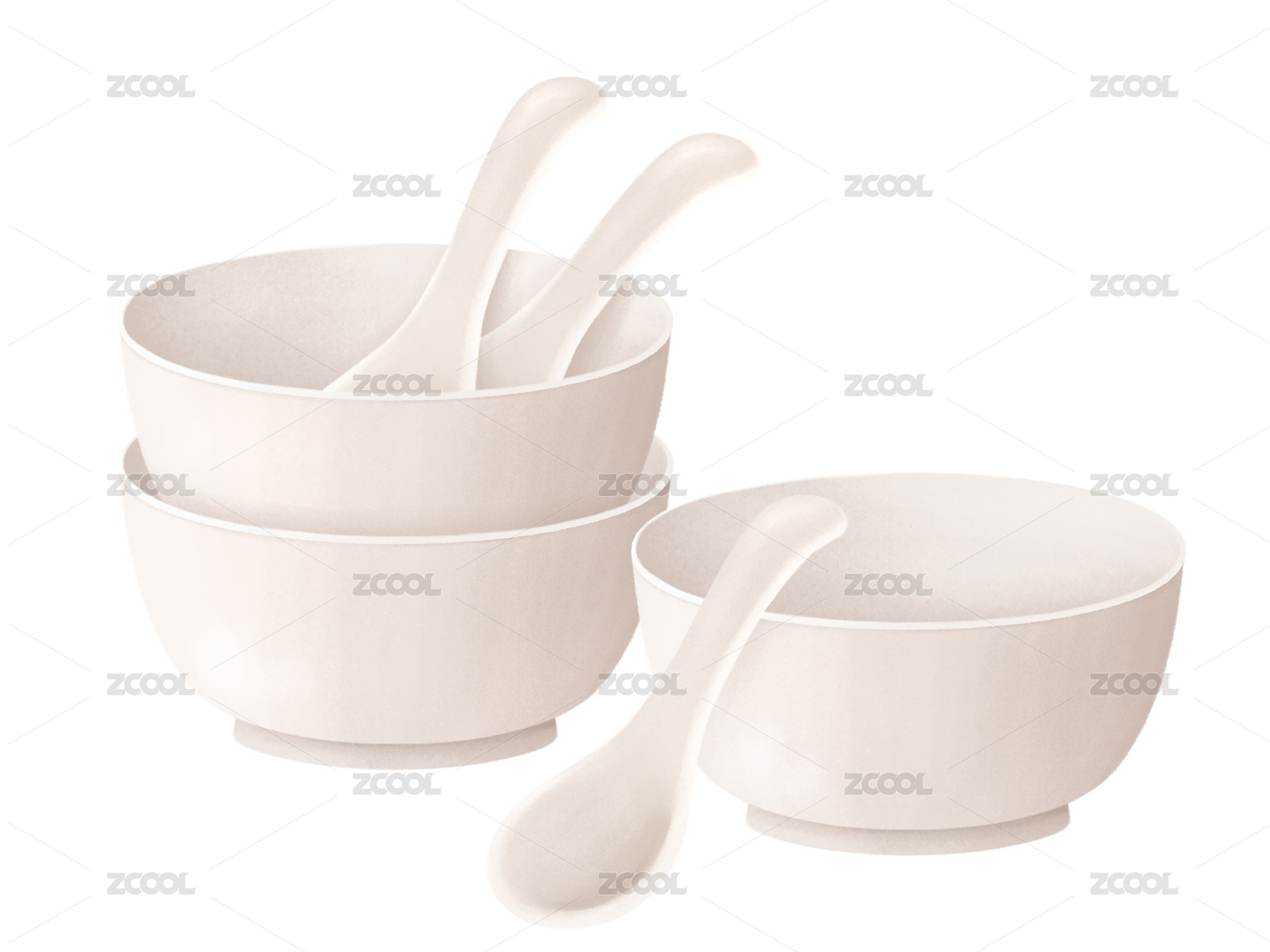 白色的碗和勺子