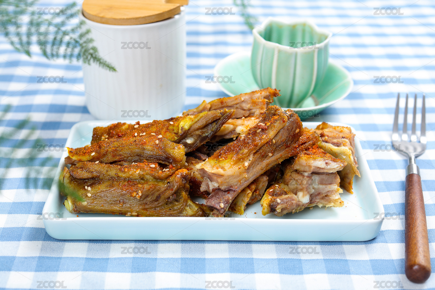 盤子里的麻辣鹵羊排骨