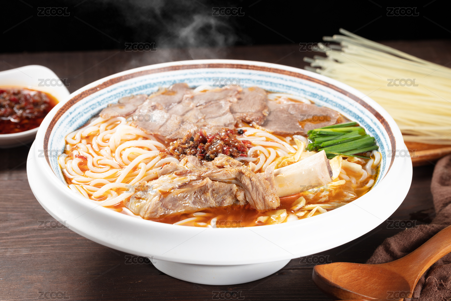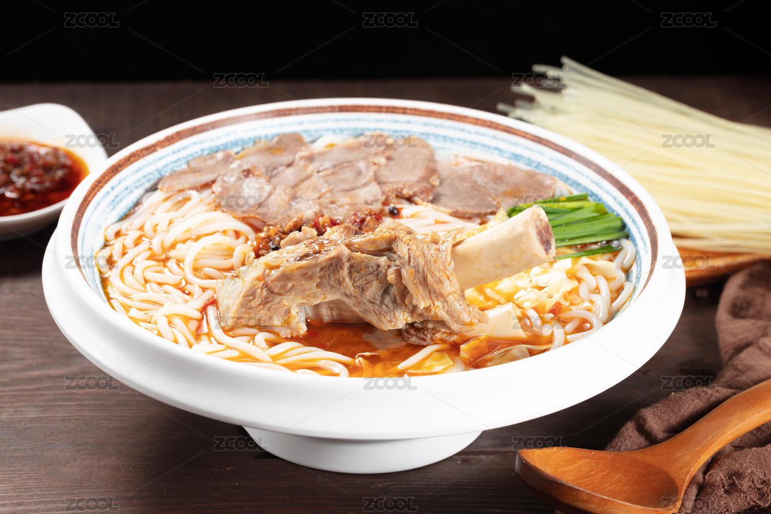 大碗里的羊排骨羊肉米線