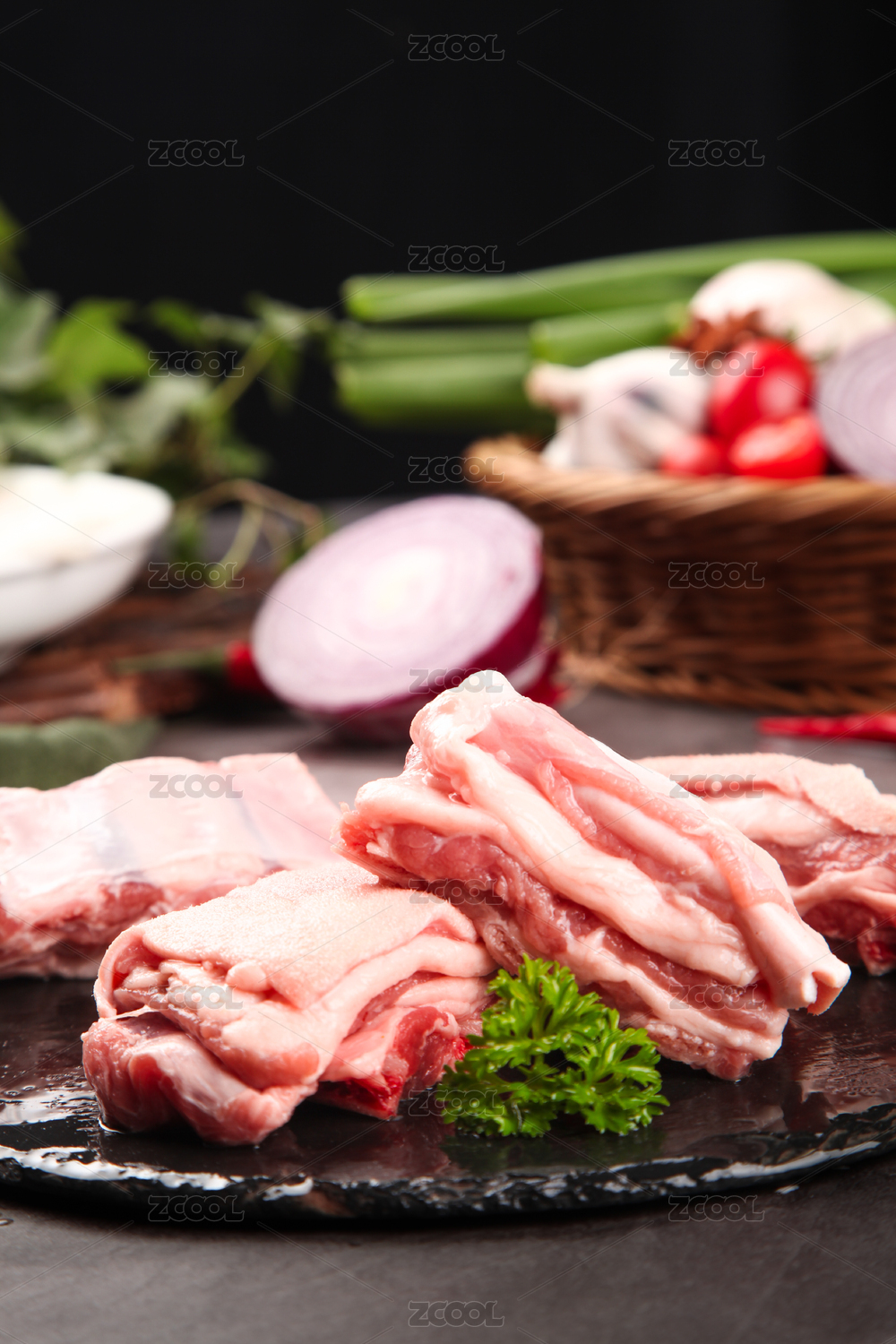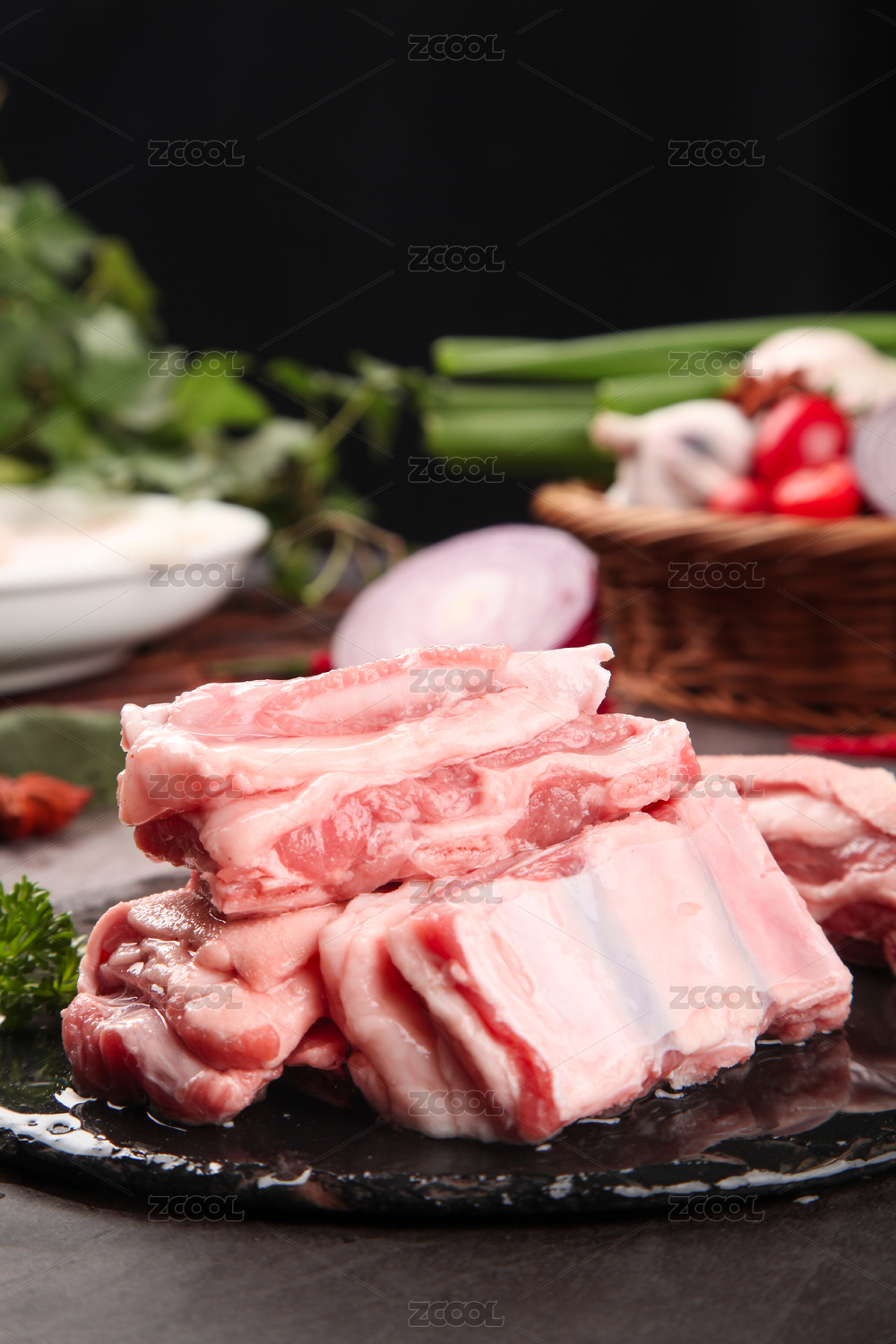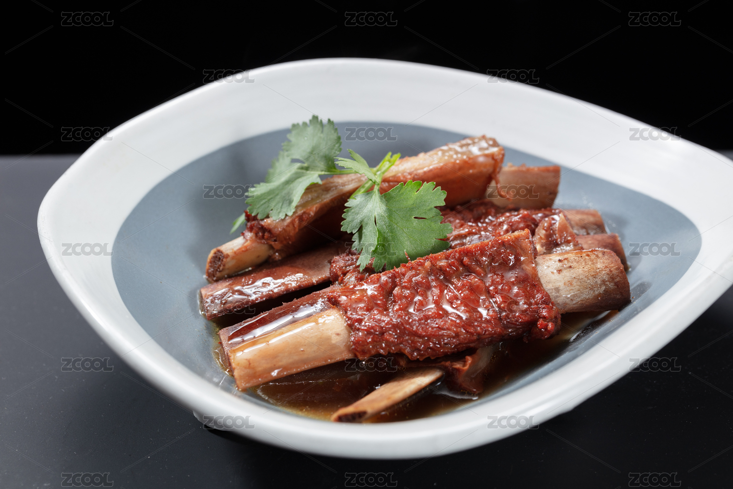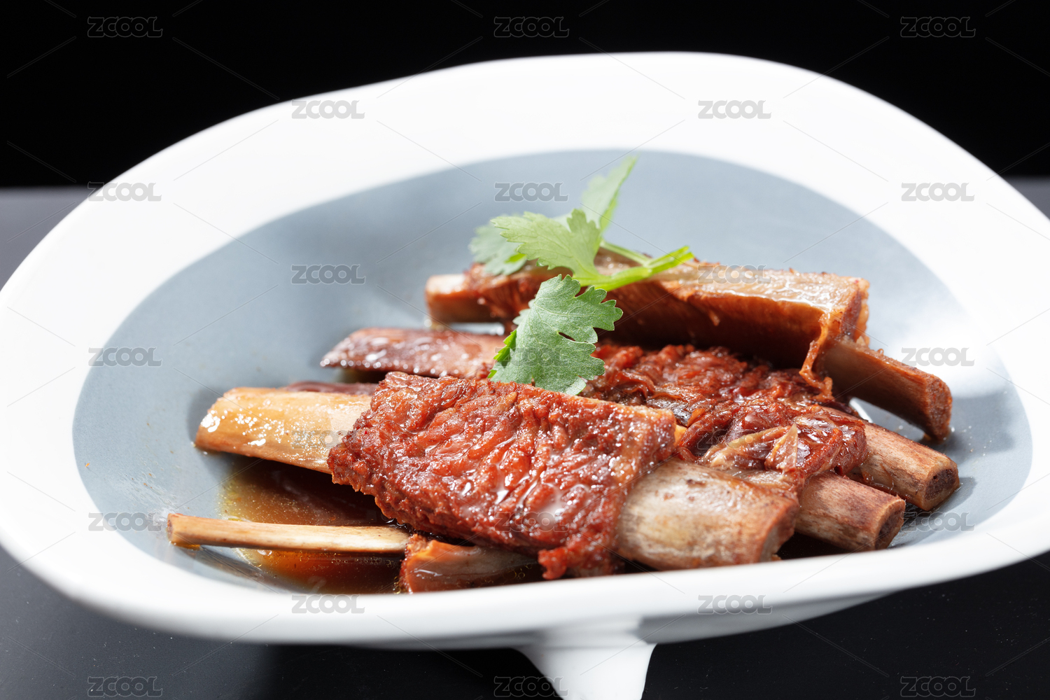 黑底上放著一堆羊排骨