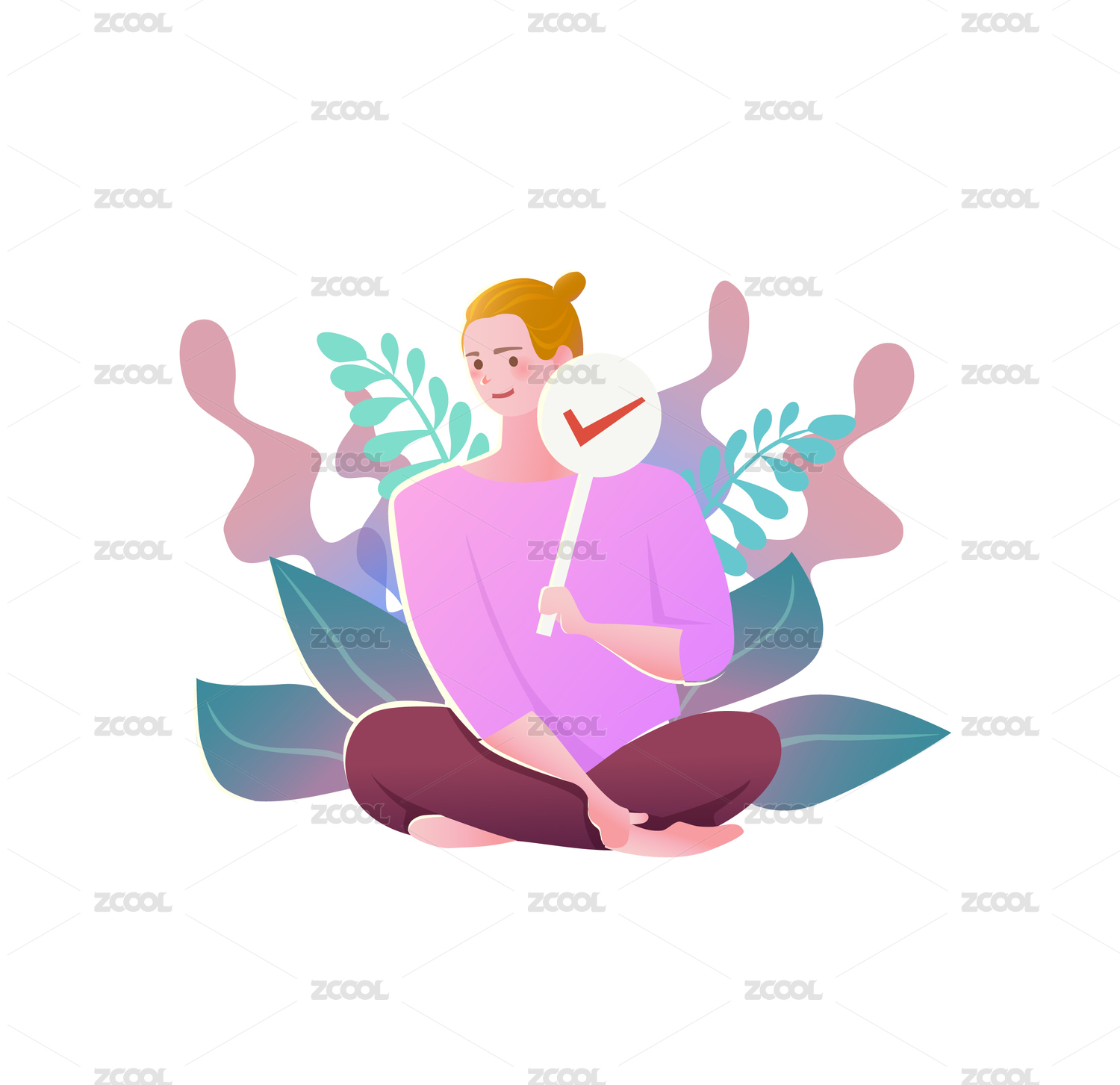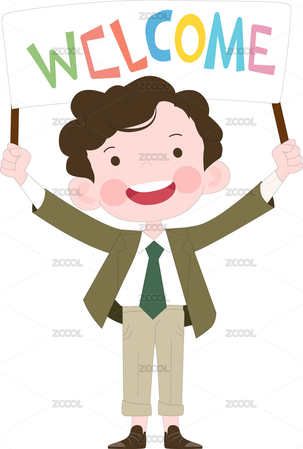 卡通手繪人物跳躍舉牌促銷購物推廣插畫素材
