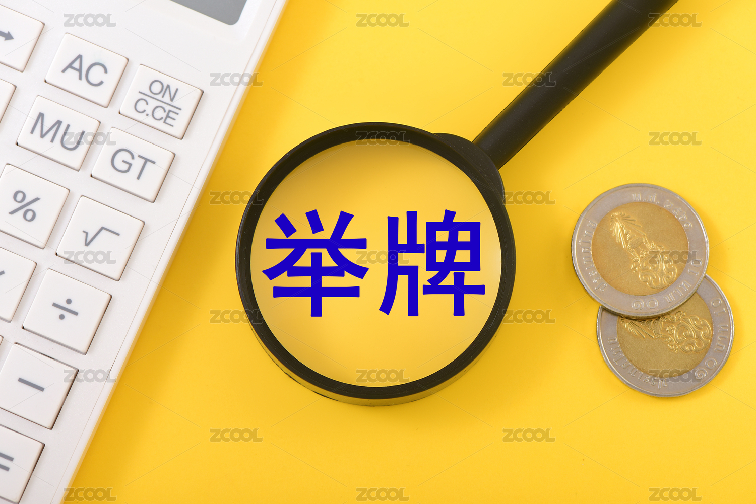 金融辦公用品上的放大鏡印著文字舉牌