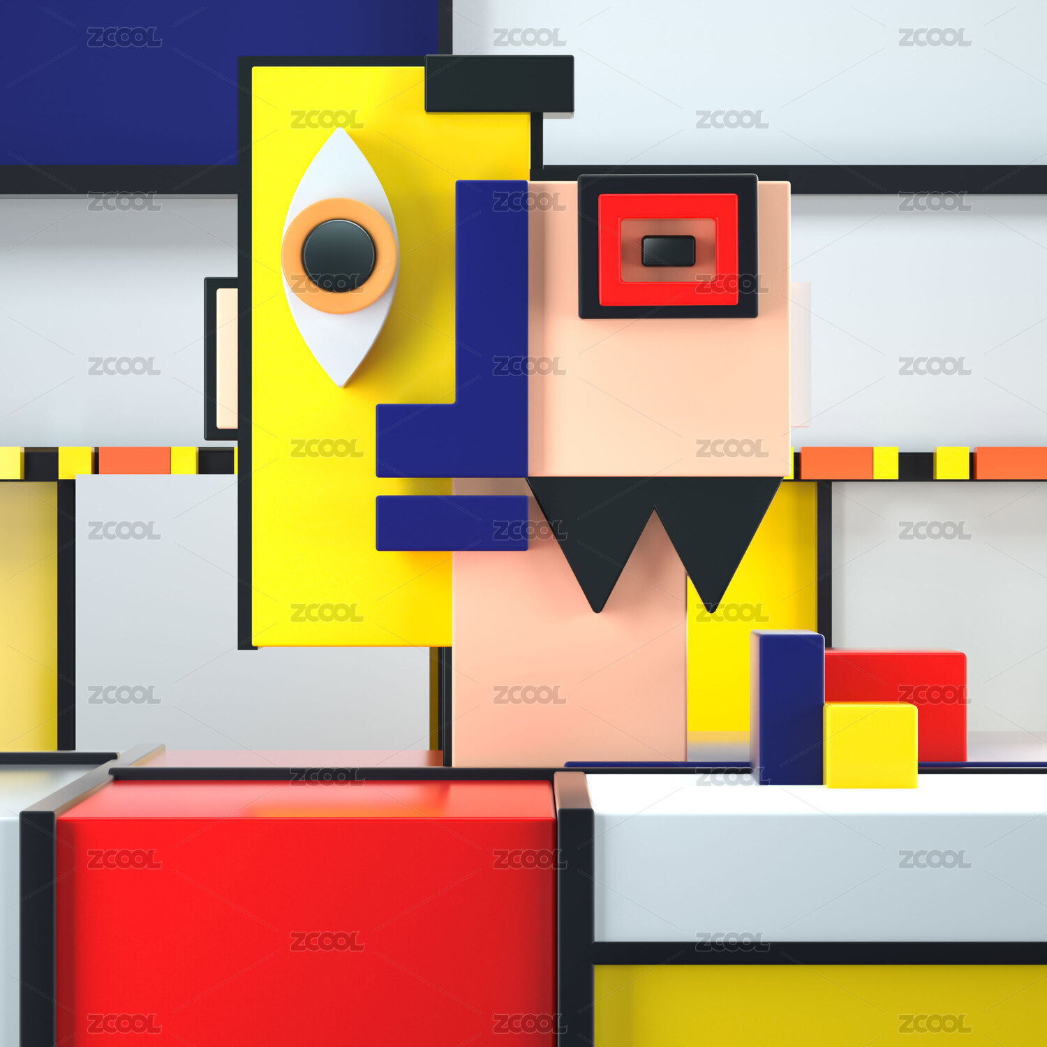 三維抽象藝術(shù)插畫紅黃藍蒙德里安