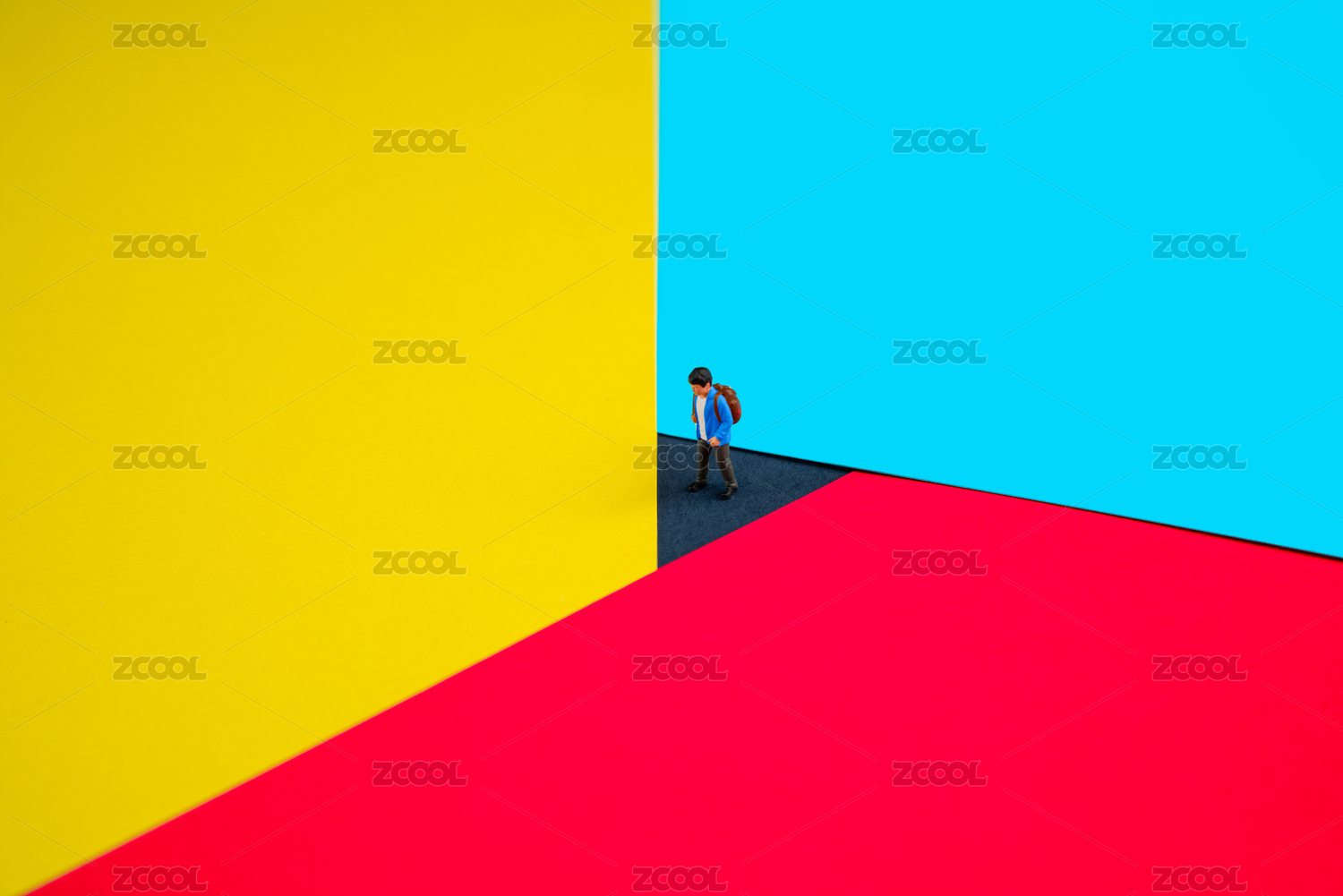 被紅黃藍包圍的小學生微縮創(chuàng)意圖