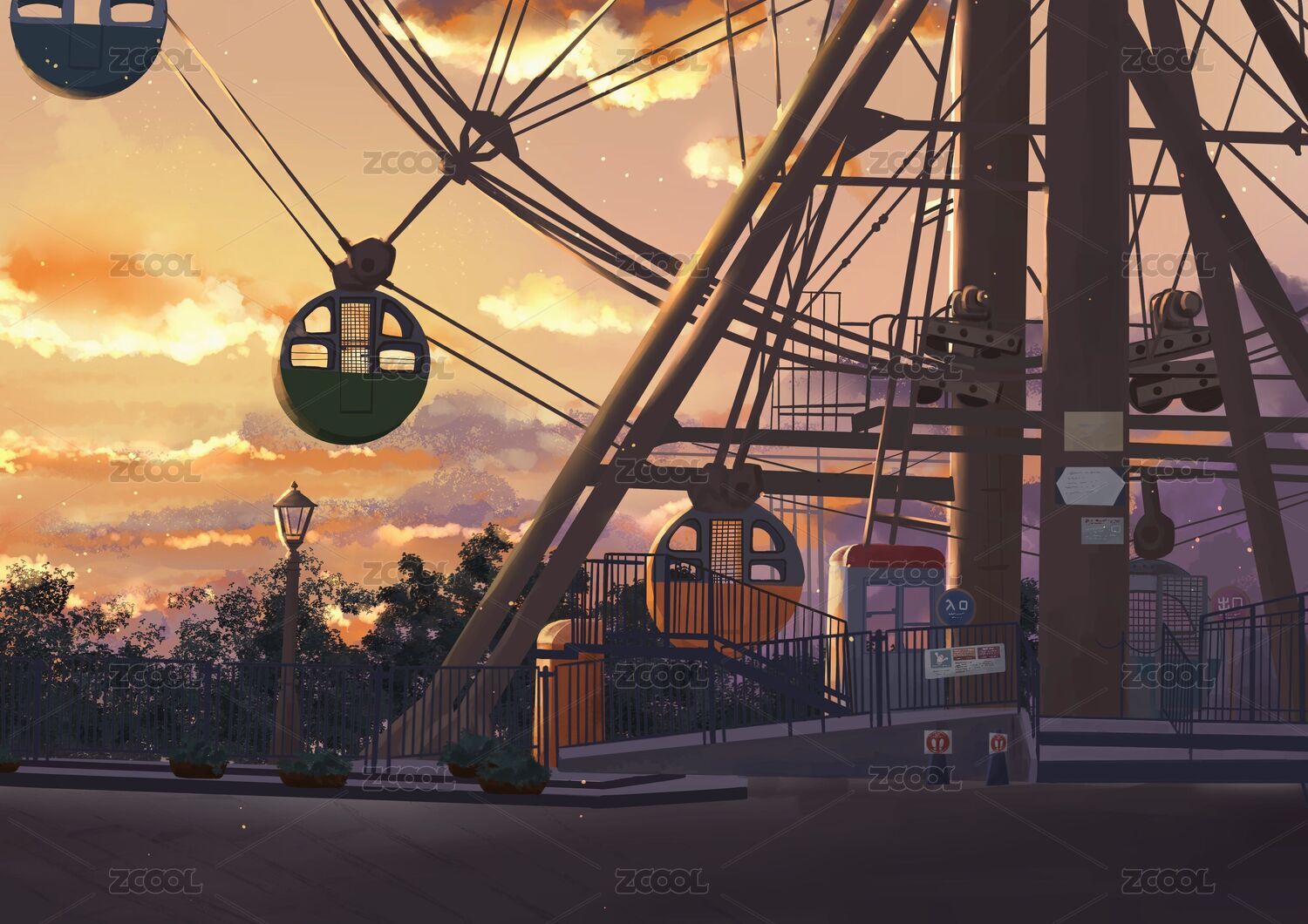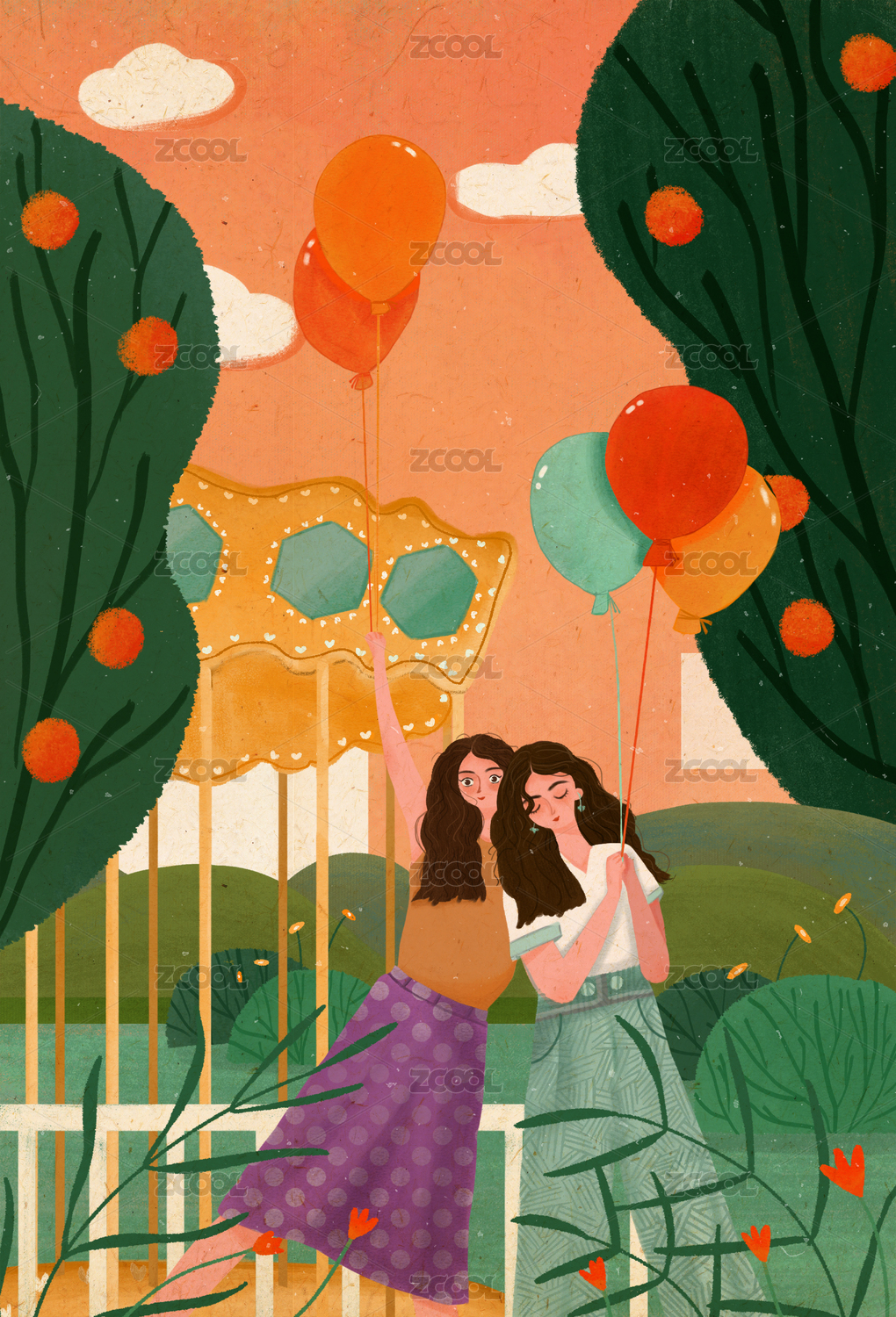 小清新風(fēng)格游樂場碰碰車插畫人物元素