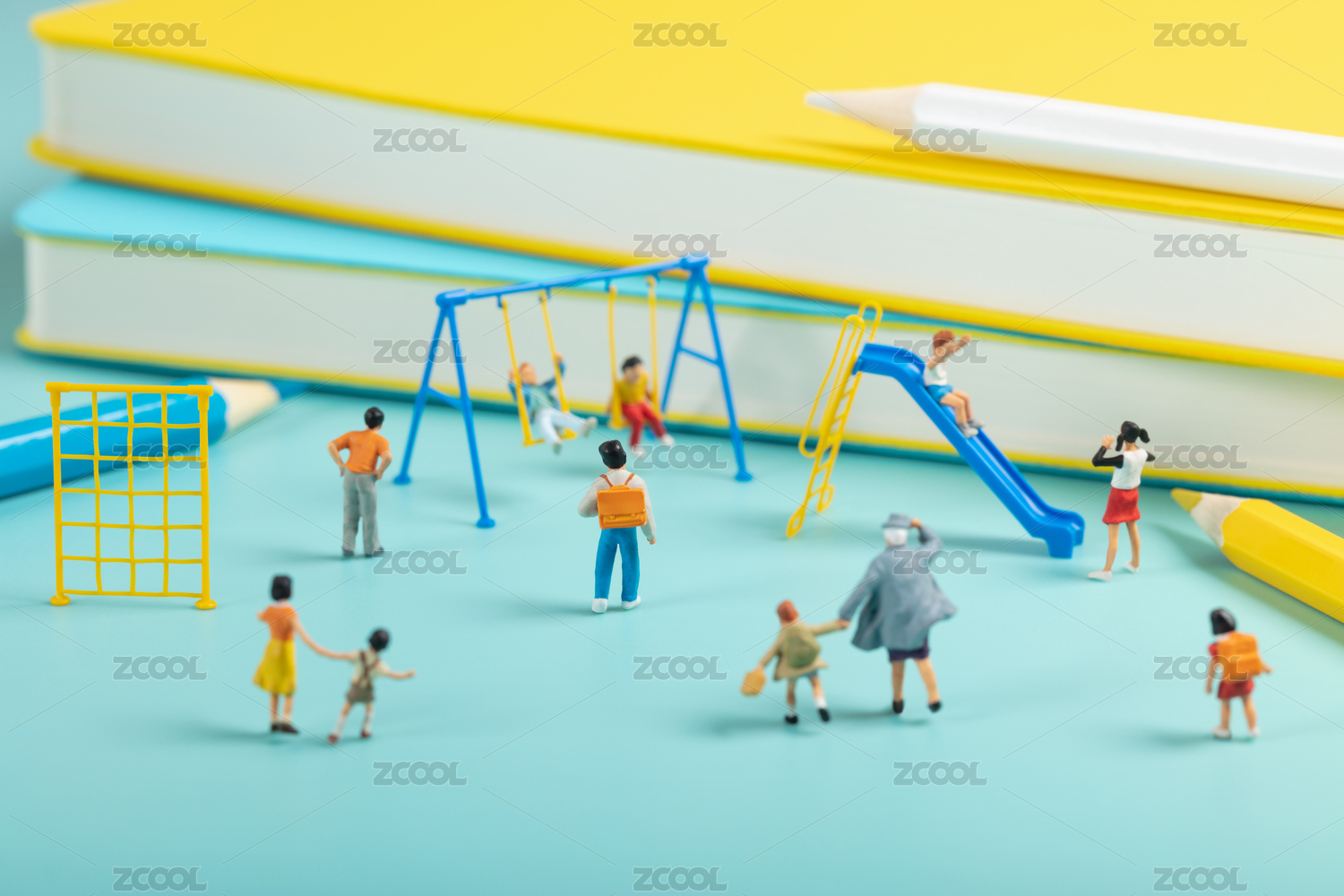 微縮創(chuàng)意減負(fù)書本游樂場快樂玩耍的小學(xué)生