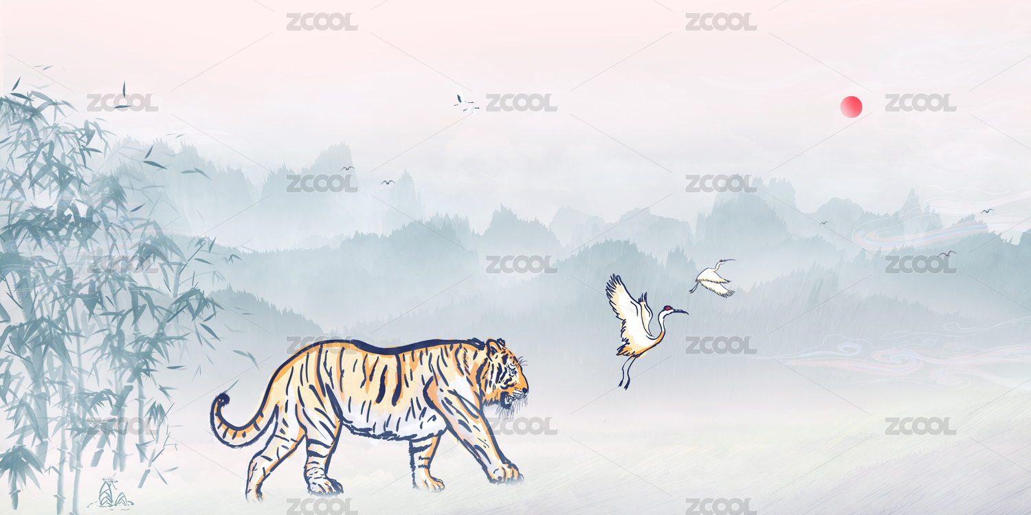 春天老虎在捕捉小鳥的節(jié)氣插畫