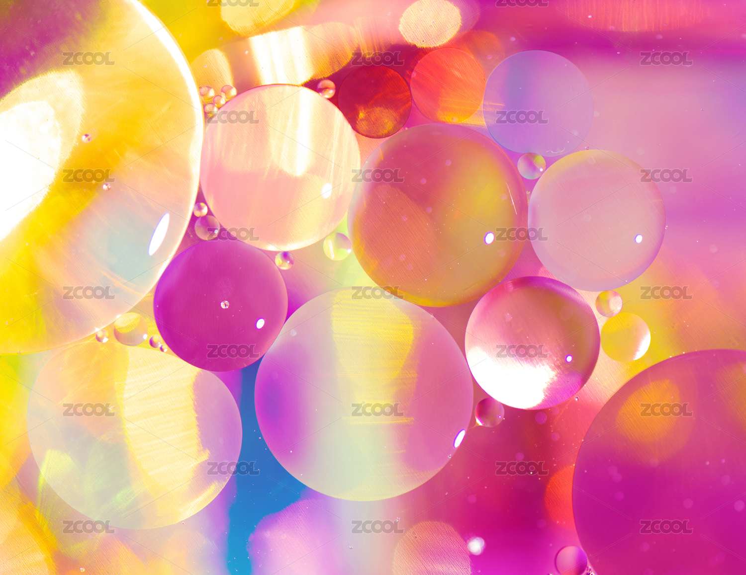 微距鏡頭捕捉陽光照耀下的彩色油滴