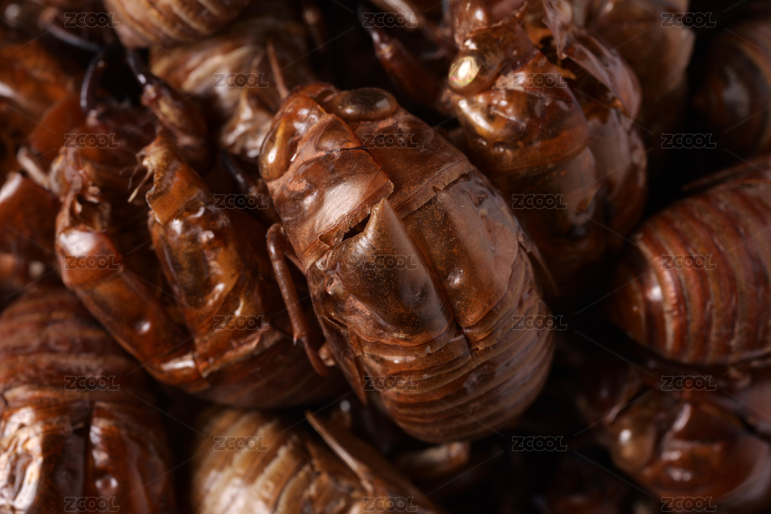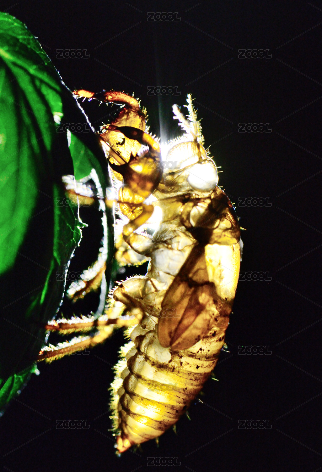 逆光中的半透明蟬蛻側面微距特寫