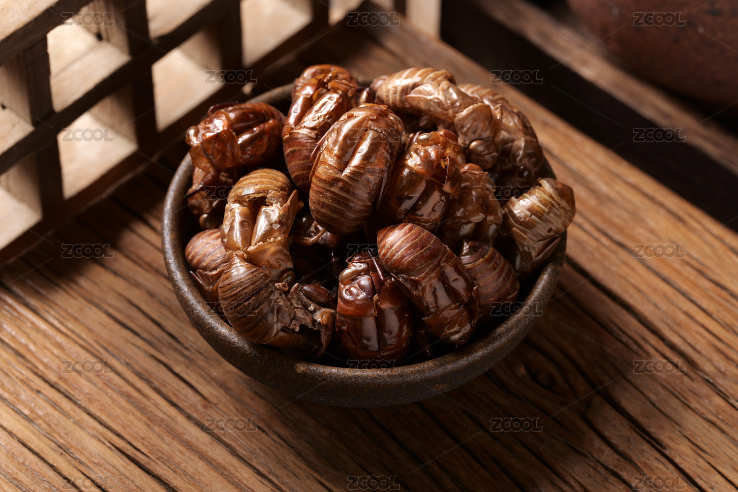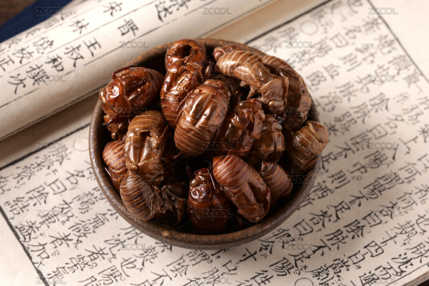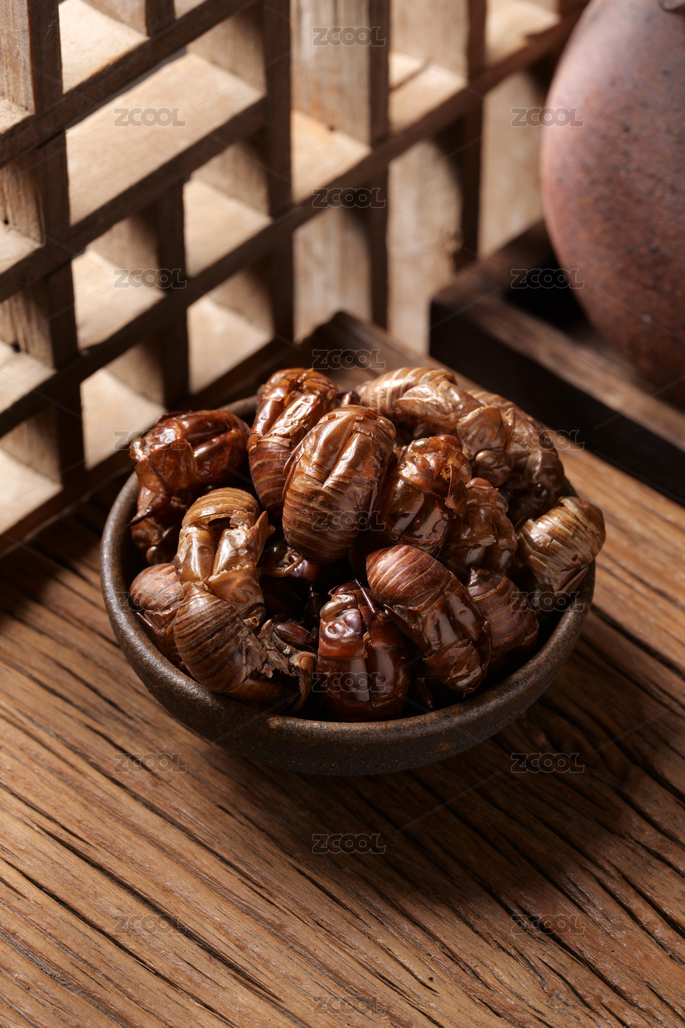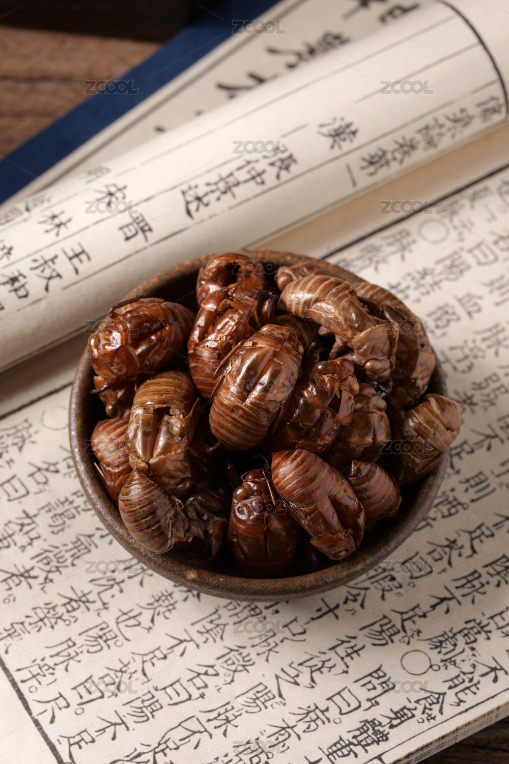 中國古風背景的中藥蟬蛻特寫