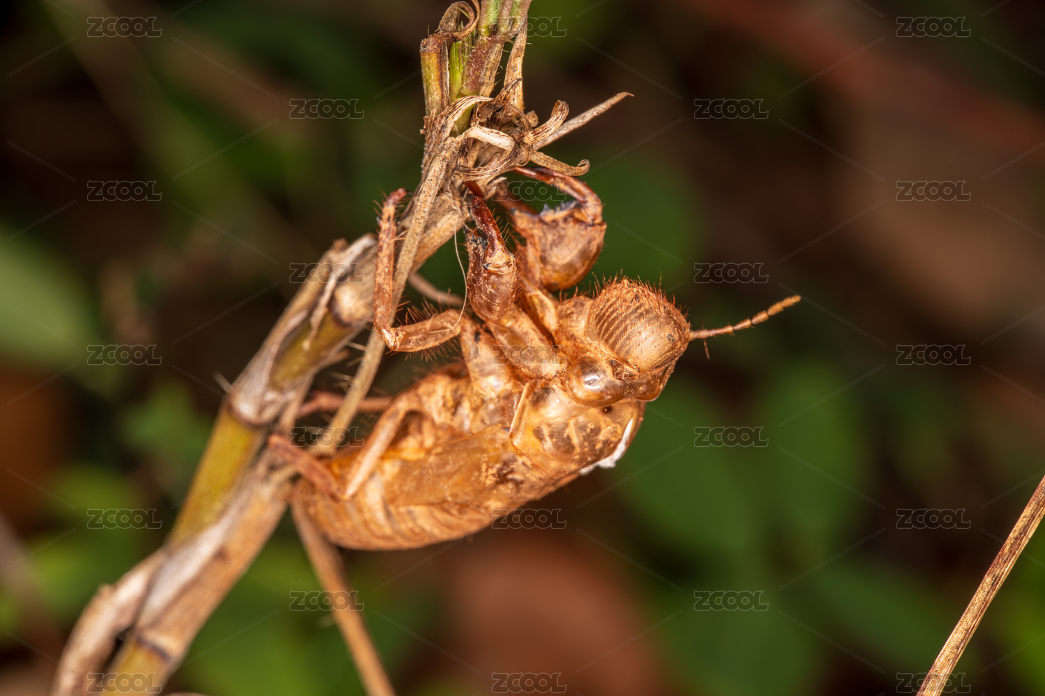 掛在枝頭的蟬蛻特寫