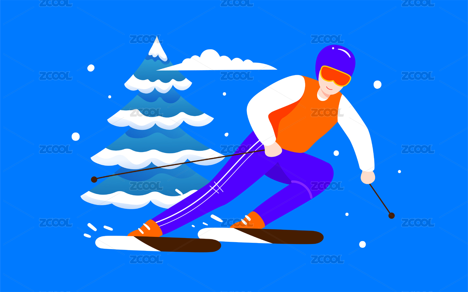 冬奧會滑雪項目插畫人物冬天戶外運動海報
