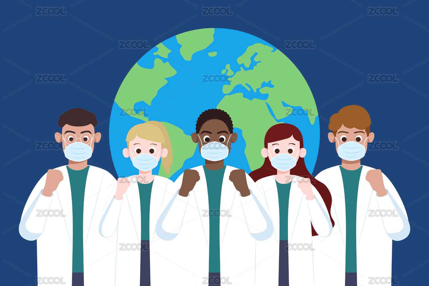 醫(yī)療插畫,全球大流行醫(yī)生護(hù)士加油打氣