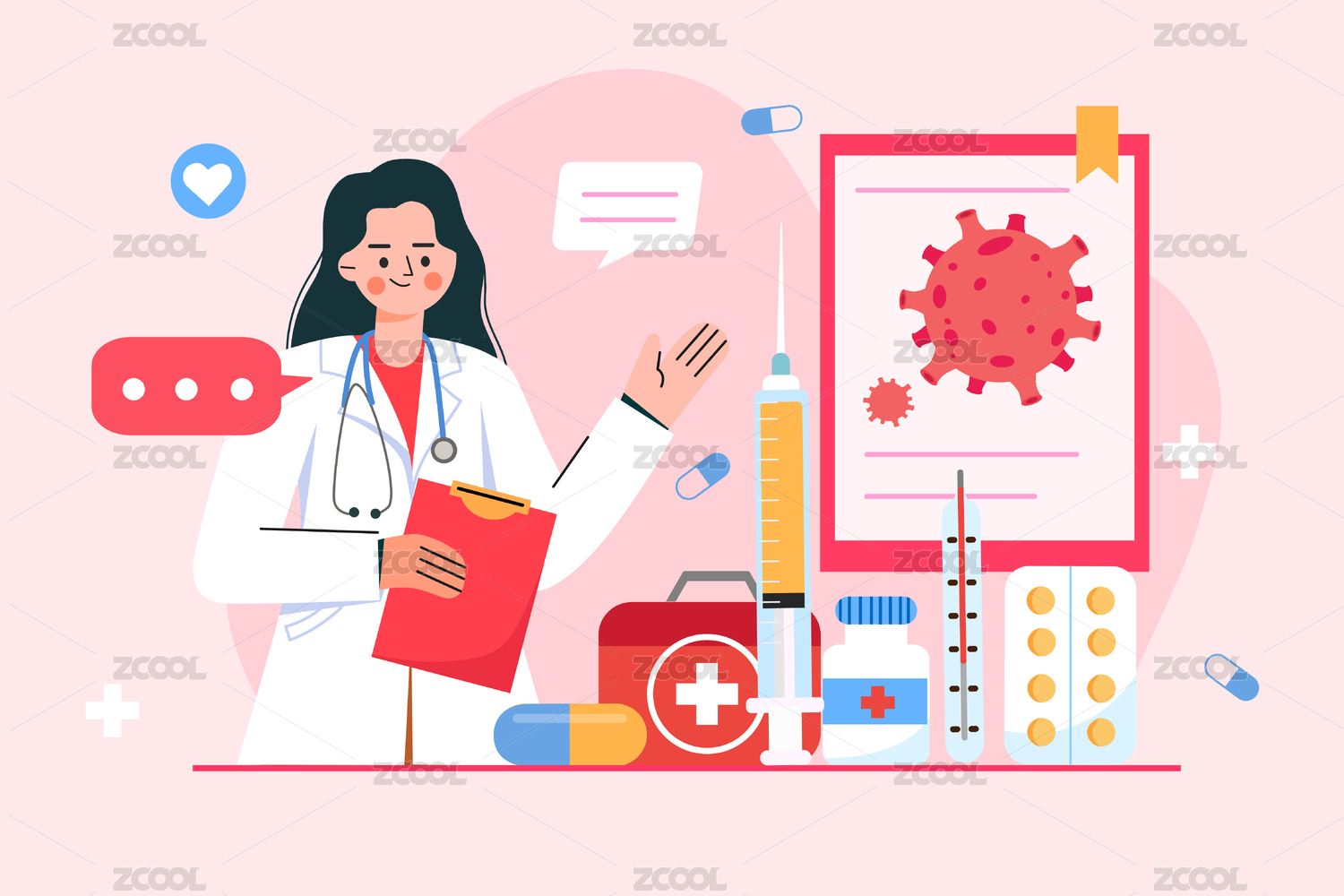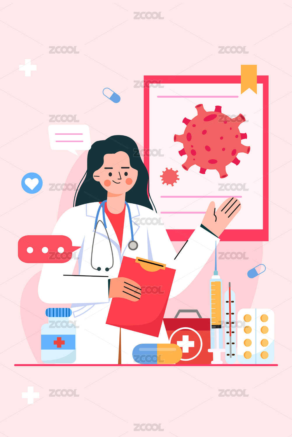 醫(yī)生科普流行性病毒概念插畫