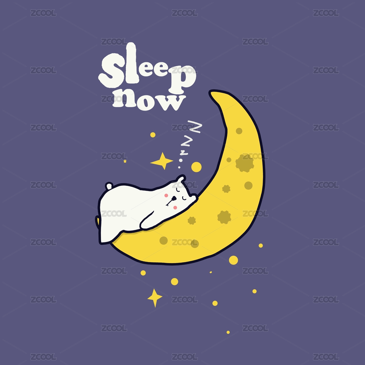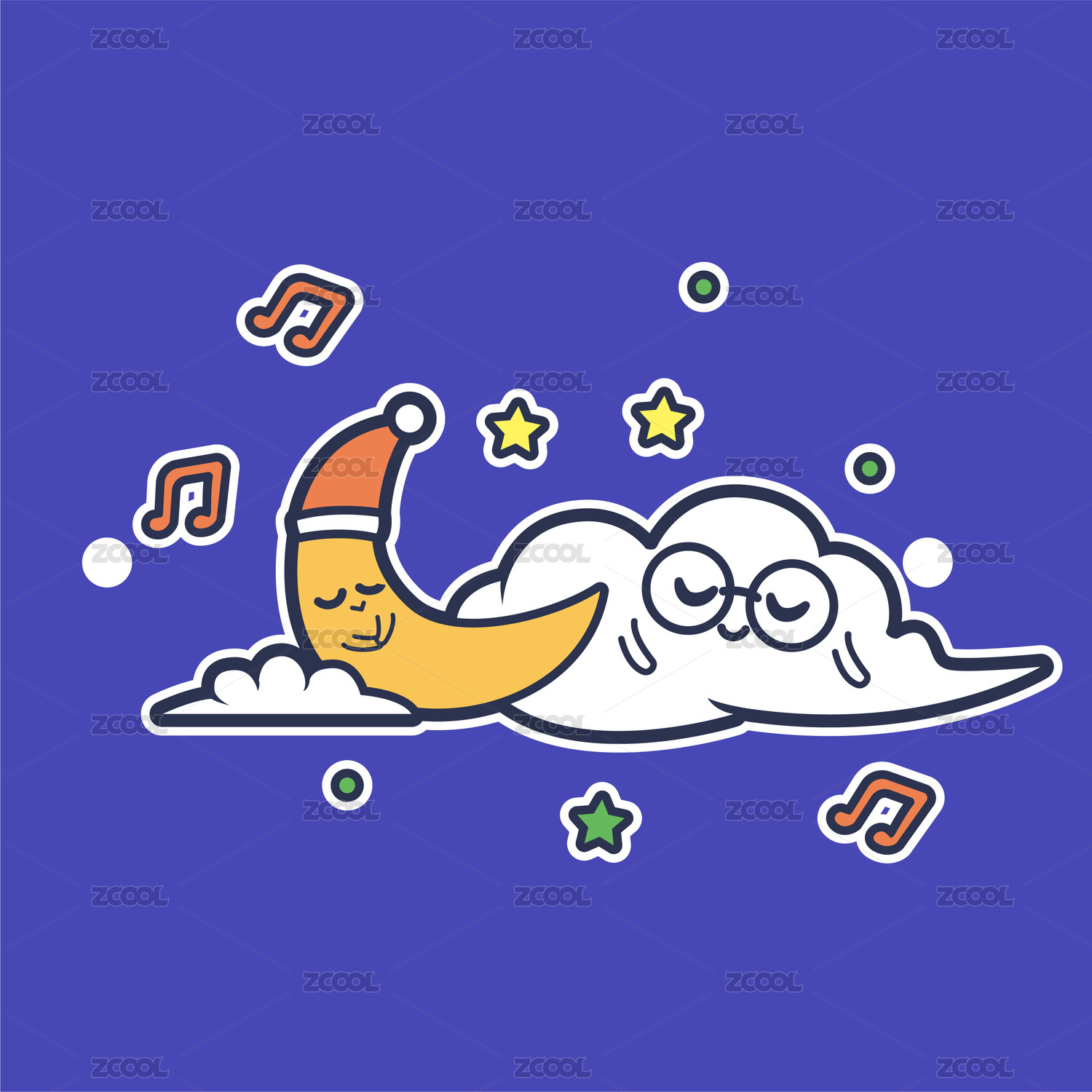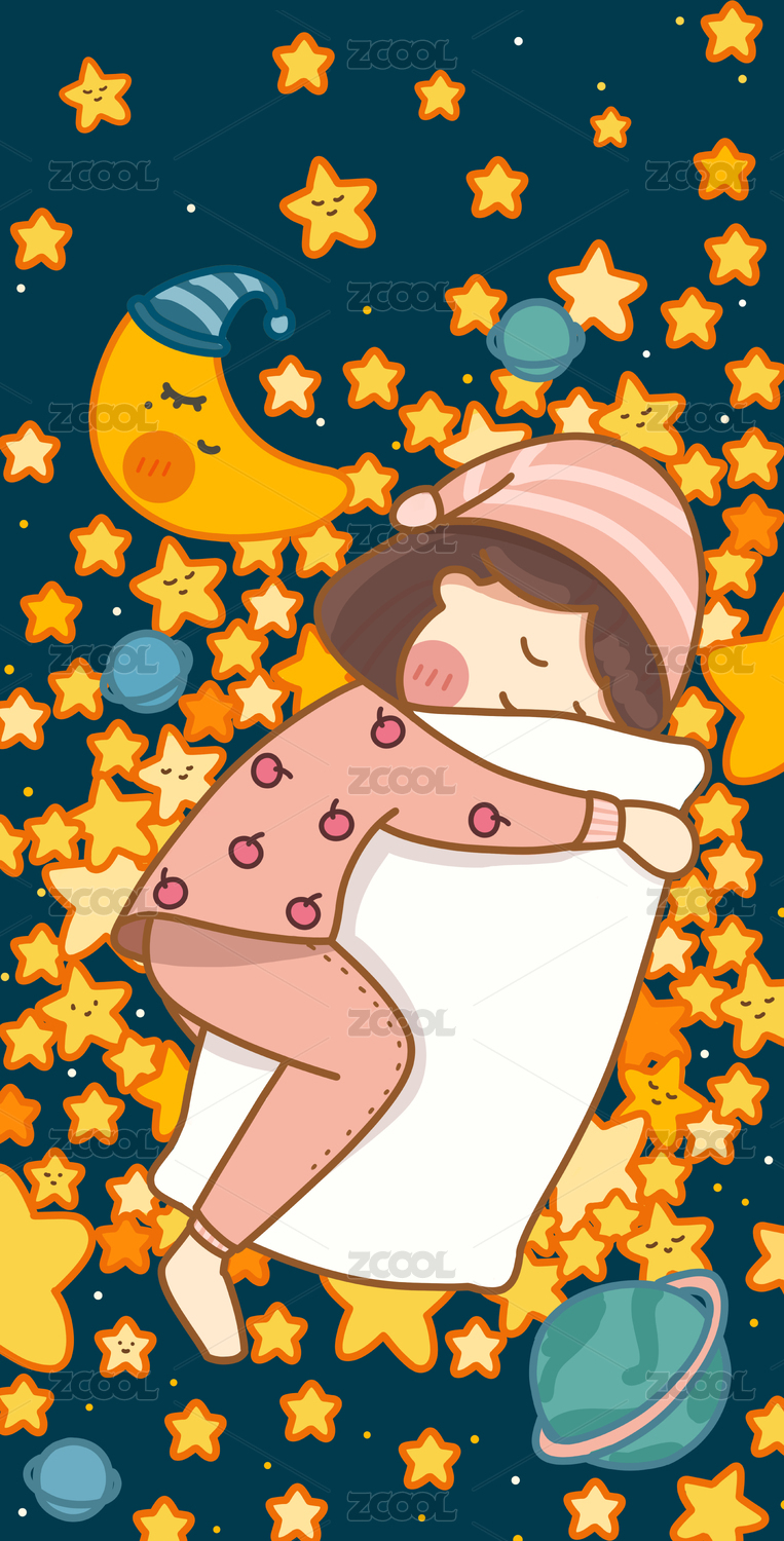 卷發(fā)女孩趴在月亮上睡覺晚安插畫