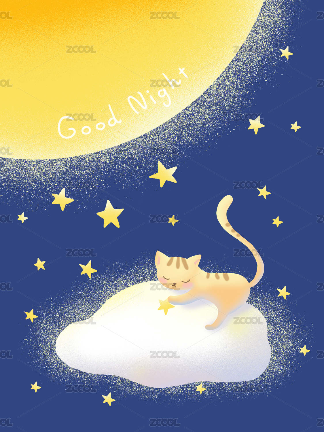 唯美長發(fā)女孩手捧著睡著的月亮晚安插畫
