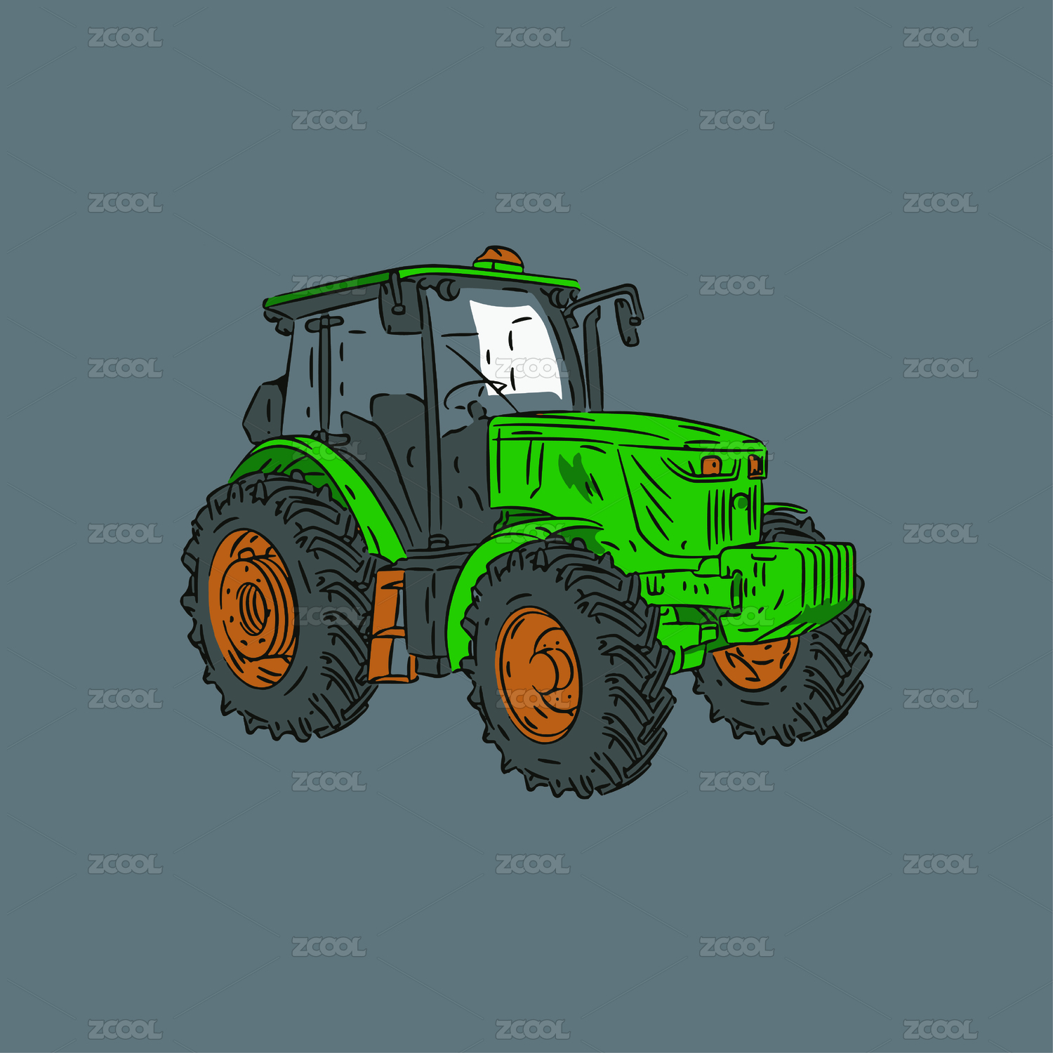 綠色高速拖拉機手繪圖案