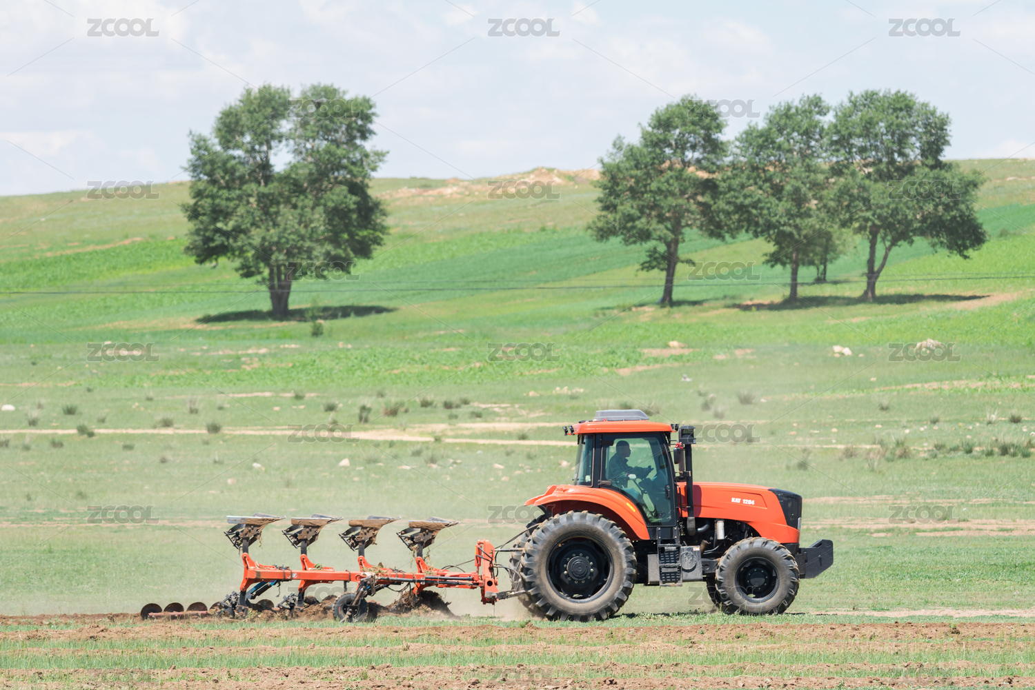 草原上耕作的農(nóng)用機械拖拉機