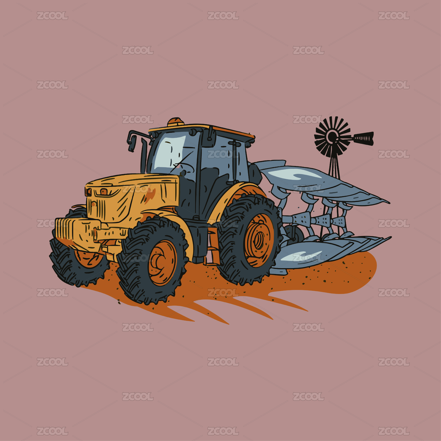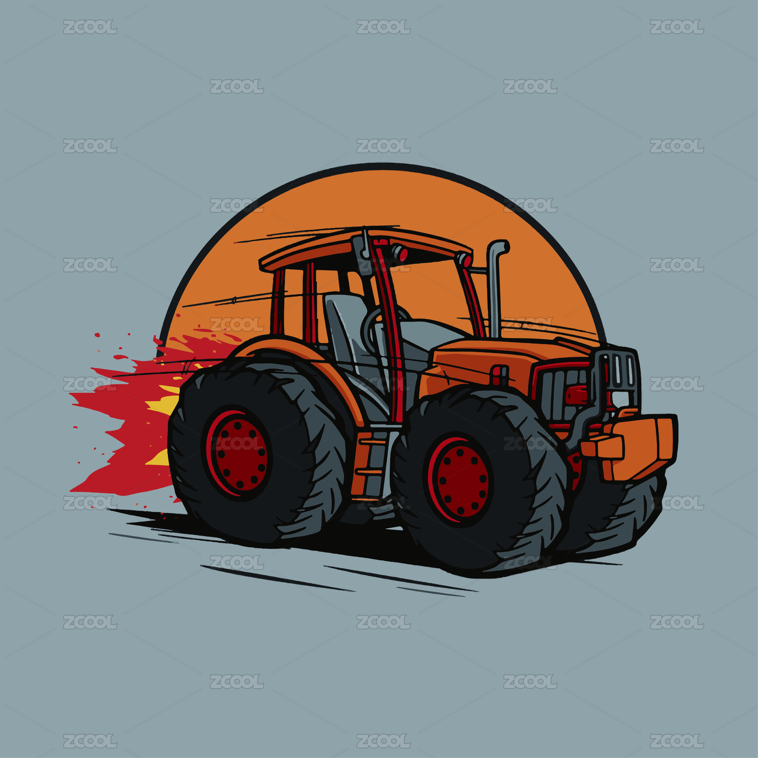 高速行駛的大腳板拖拉機手繪圖案
