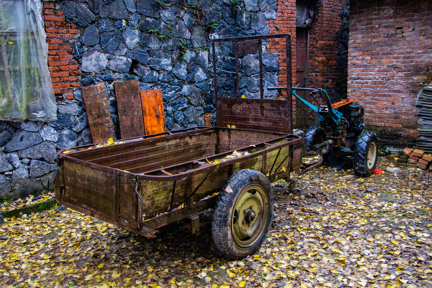 農(nóng)場邊上的一臺老式拖拉機