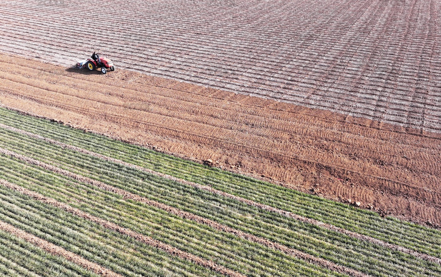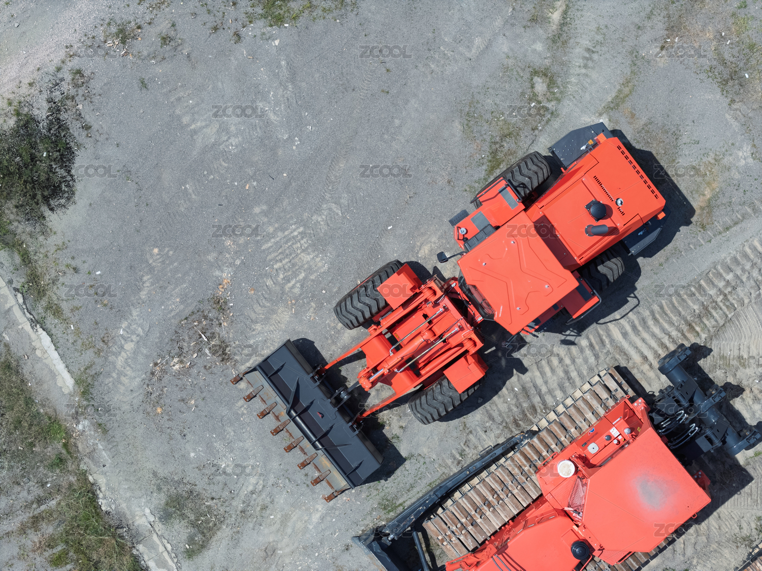 紅色拖拉機的俯視圖