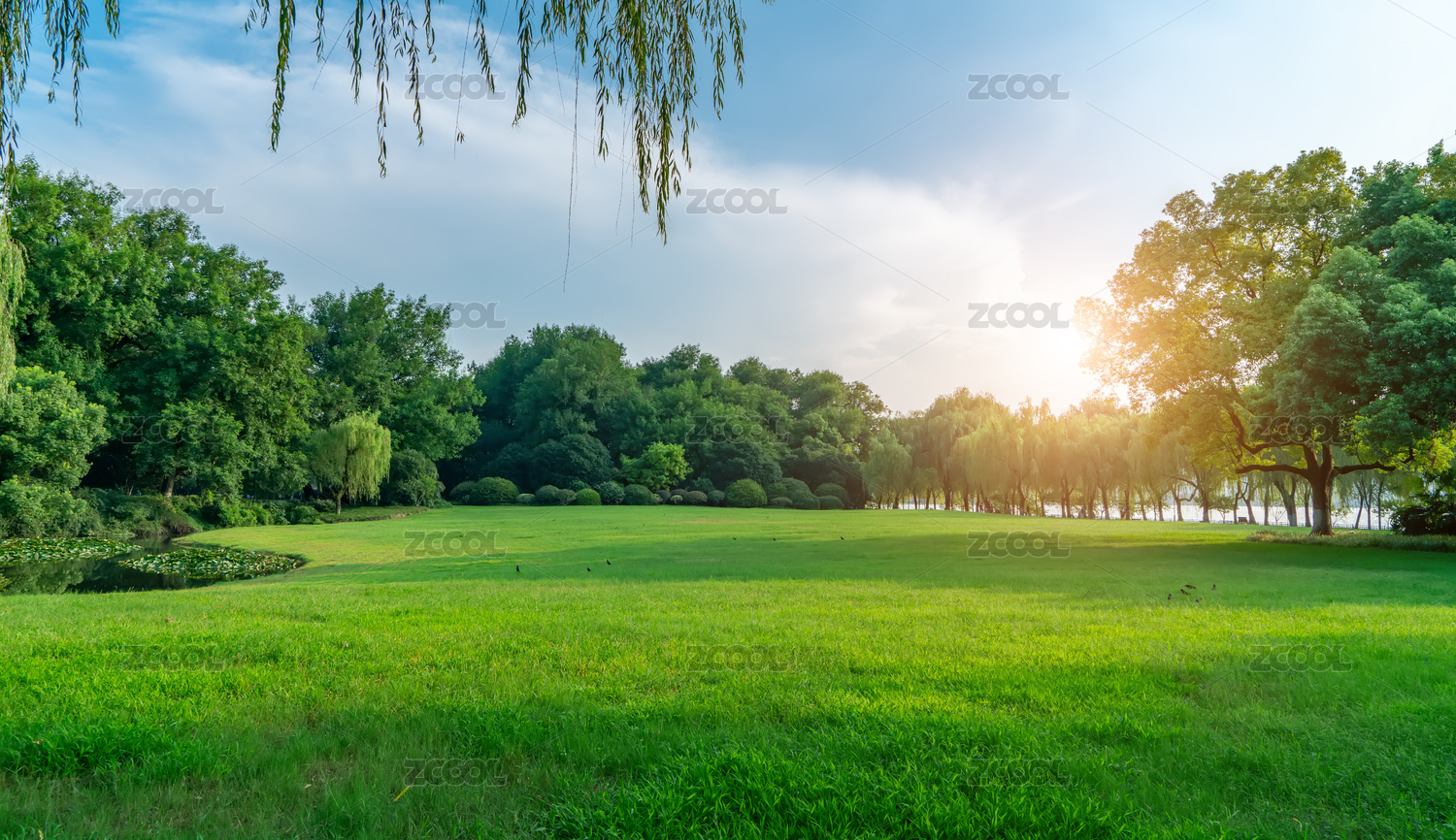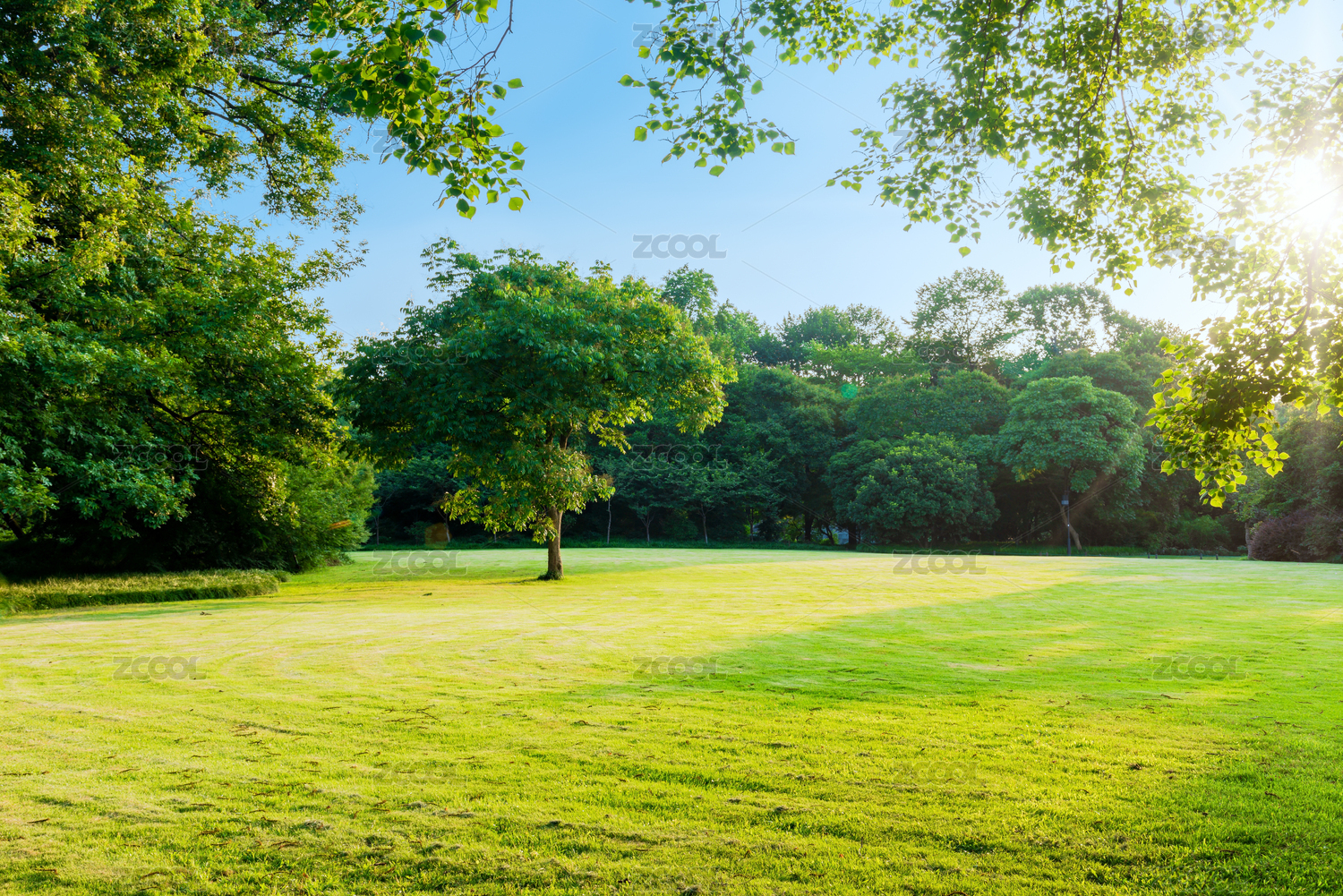 園林景觀,嫩綠的草地與樹(shù)林大畫(huà)幅