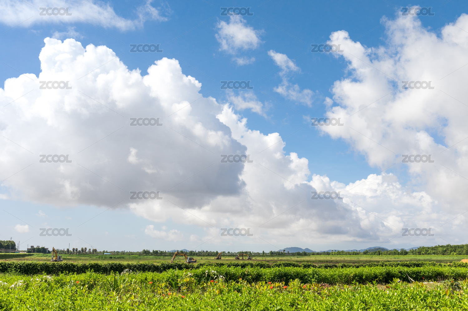 藍(lán)天草地綠樹(shù)林背景素材