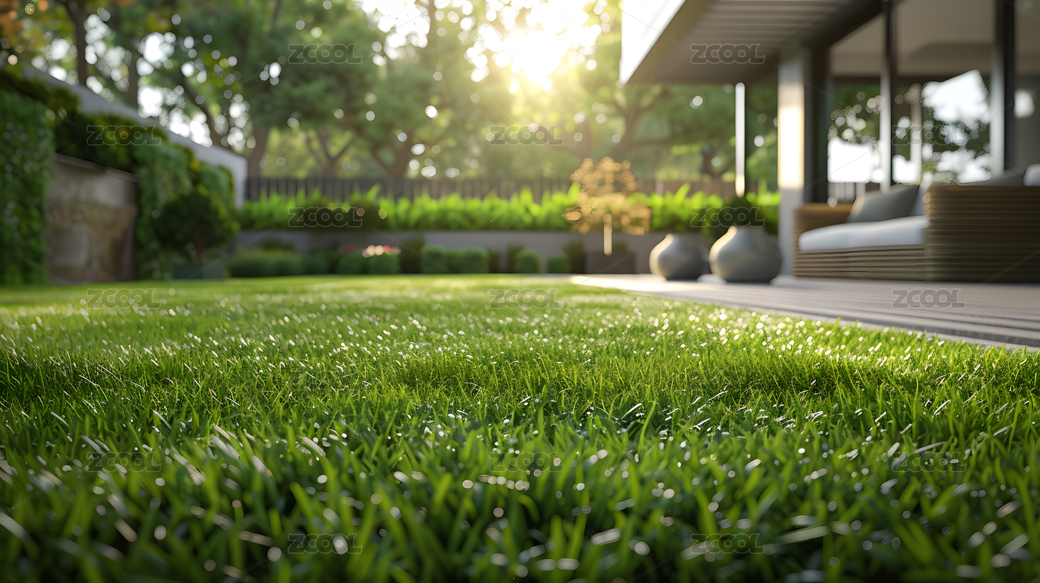 現(xiàn)代簡(jiǎn)約別墅前的草地空間背景