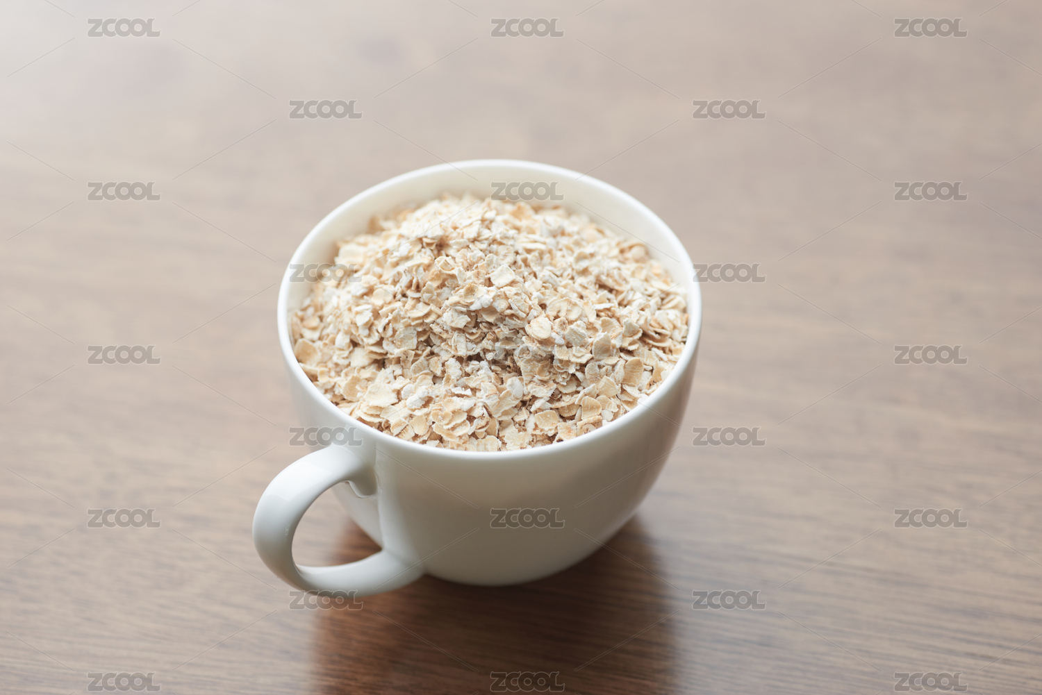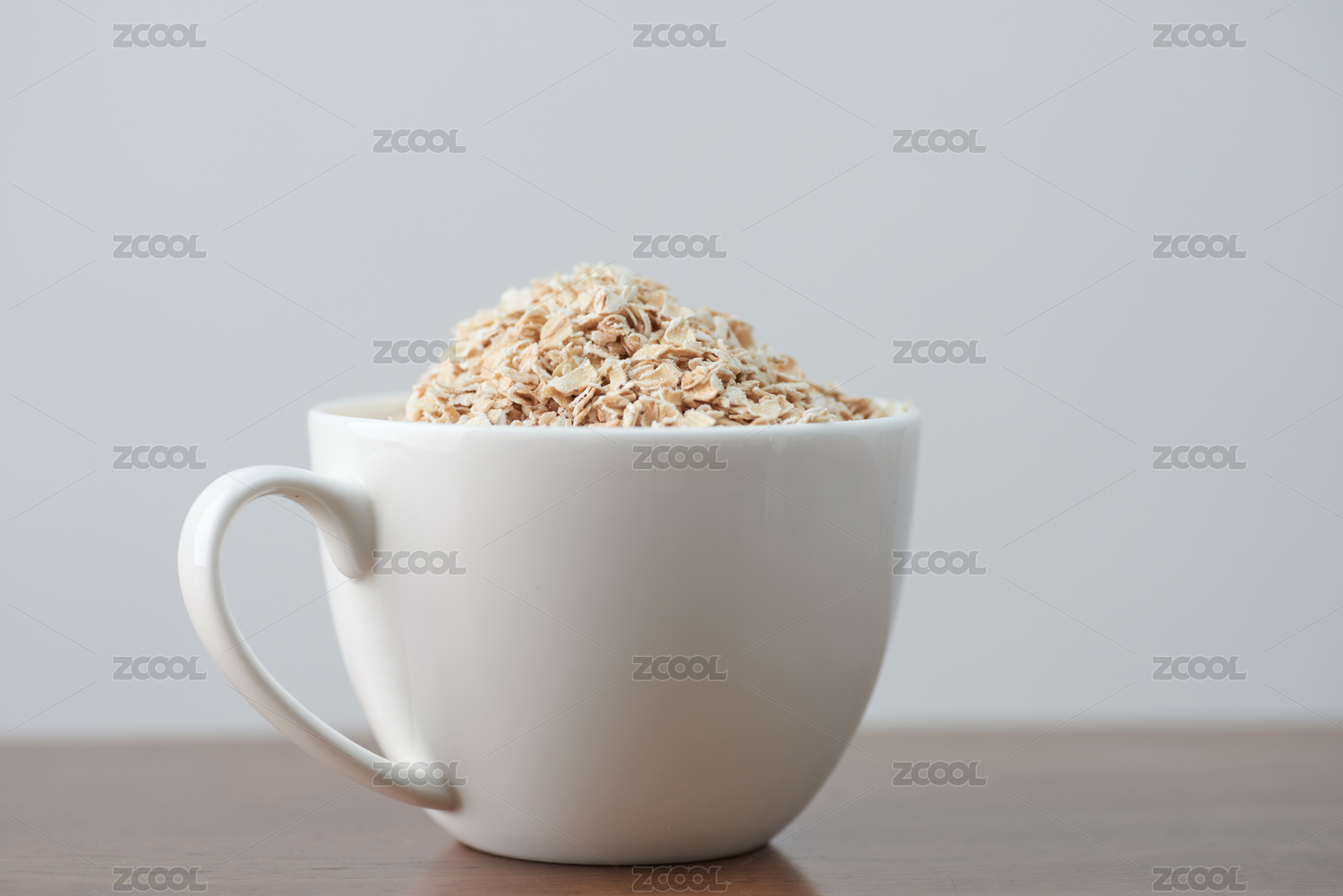 白色骨瓷杯里的即食營(yíng)養(yǎng)燕麥片