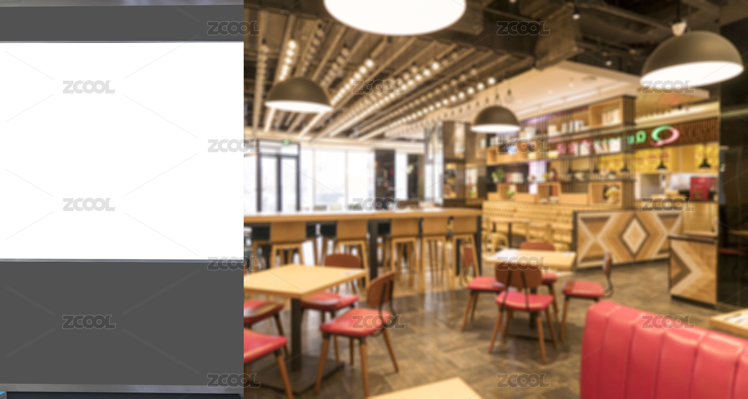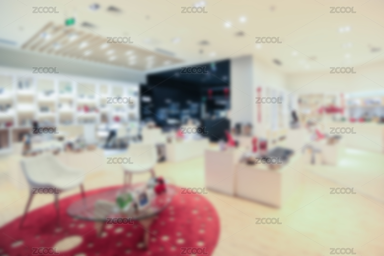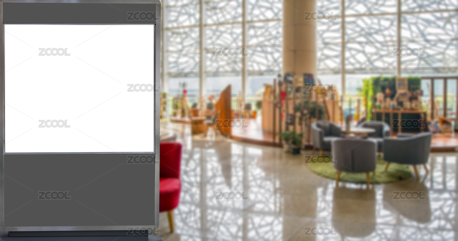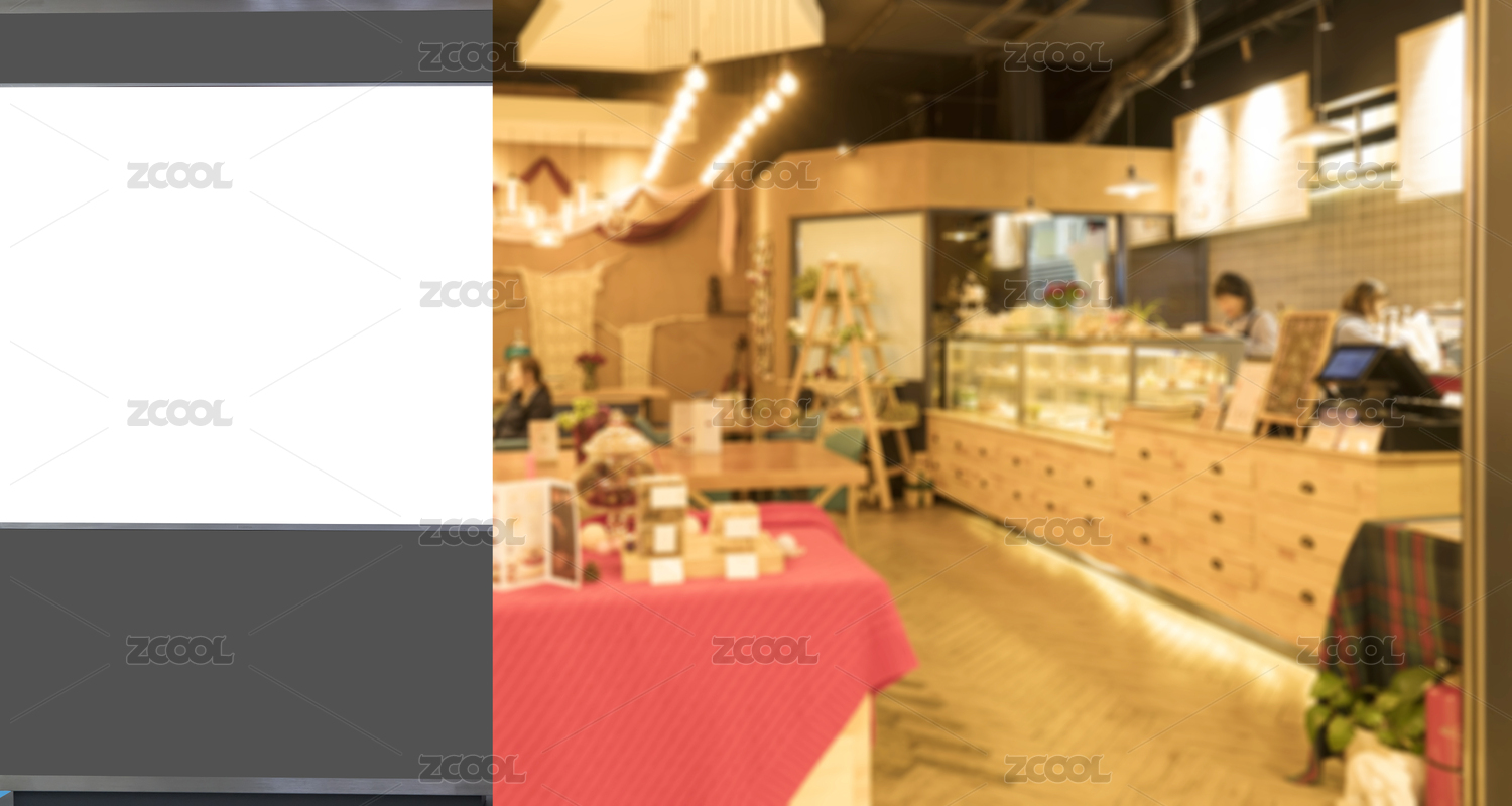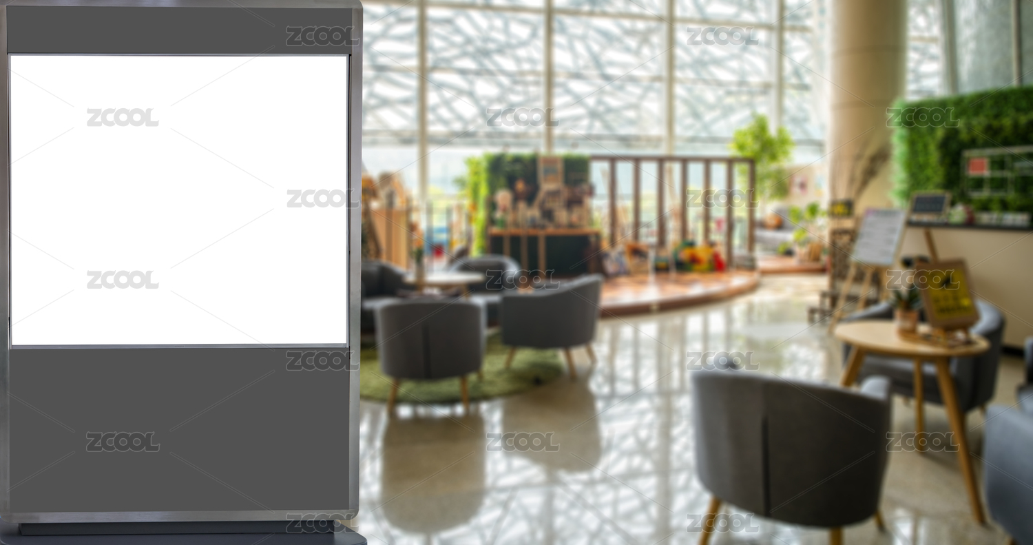 模糊的店鋪內(nèi)景和空白燈箱廣告