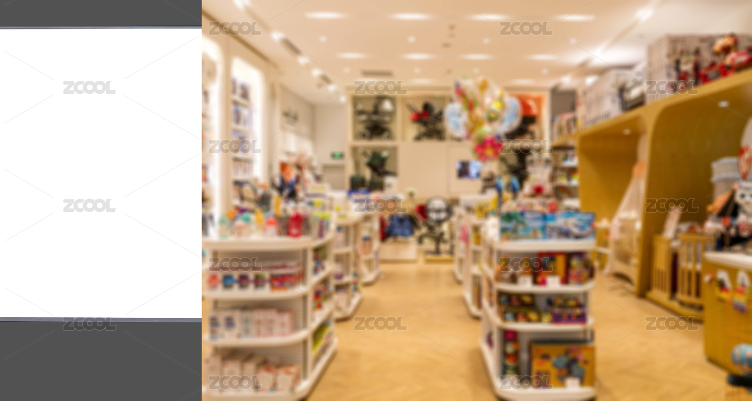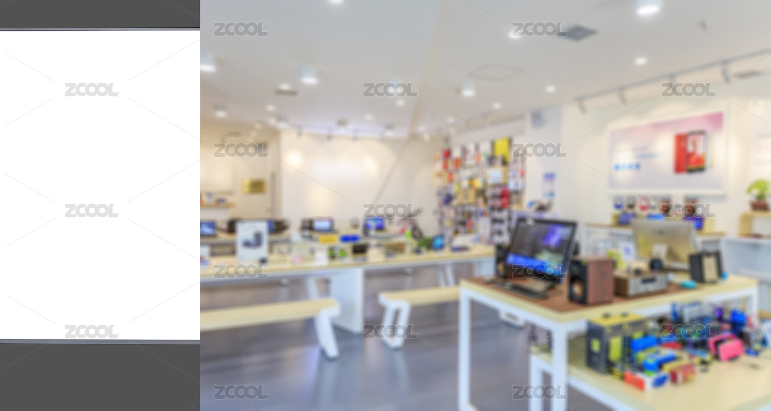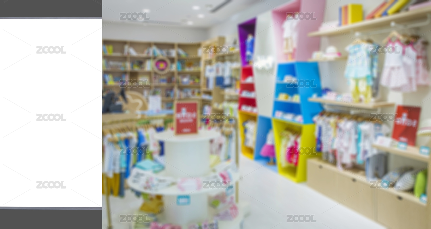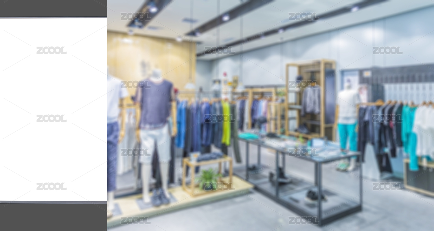 模糊的店鋪內(nèi)景和空白燈箱廣告