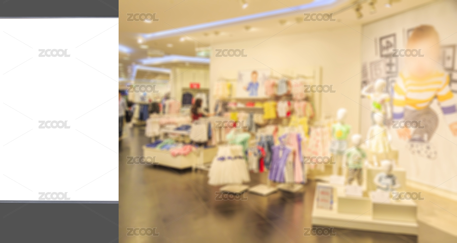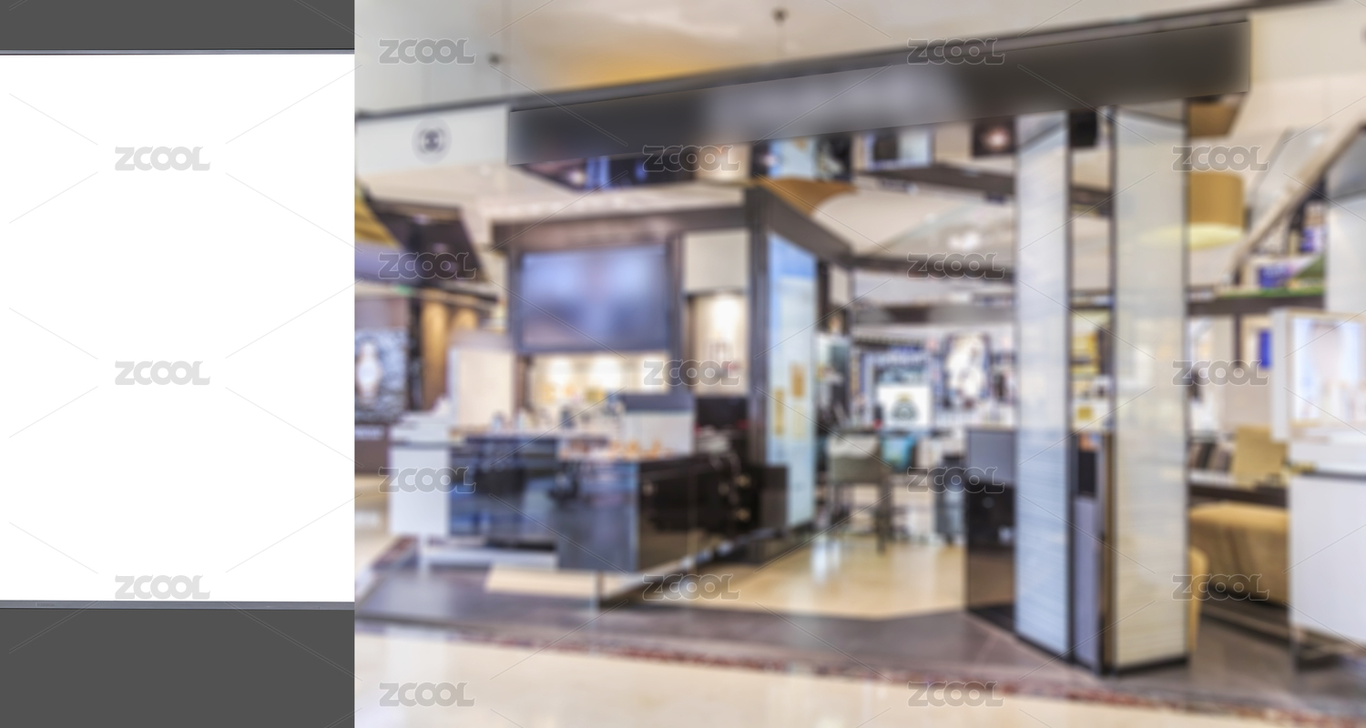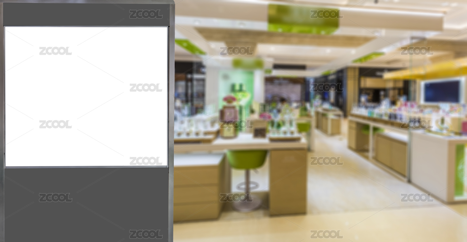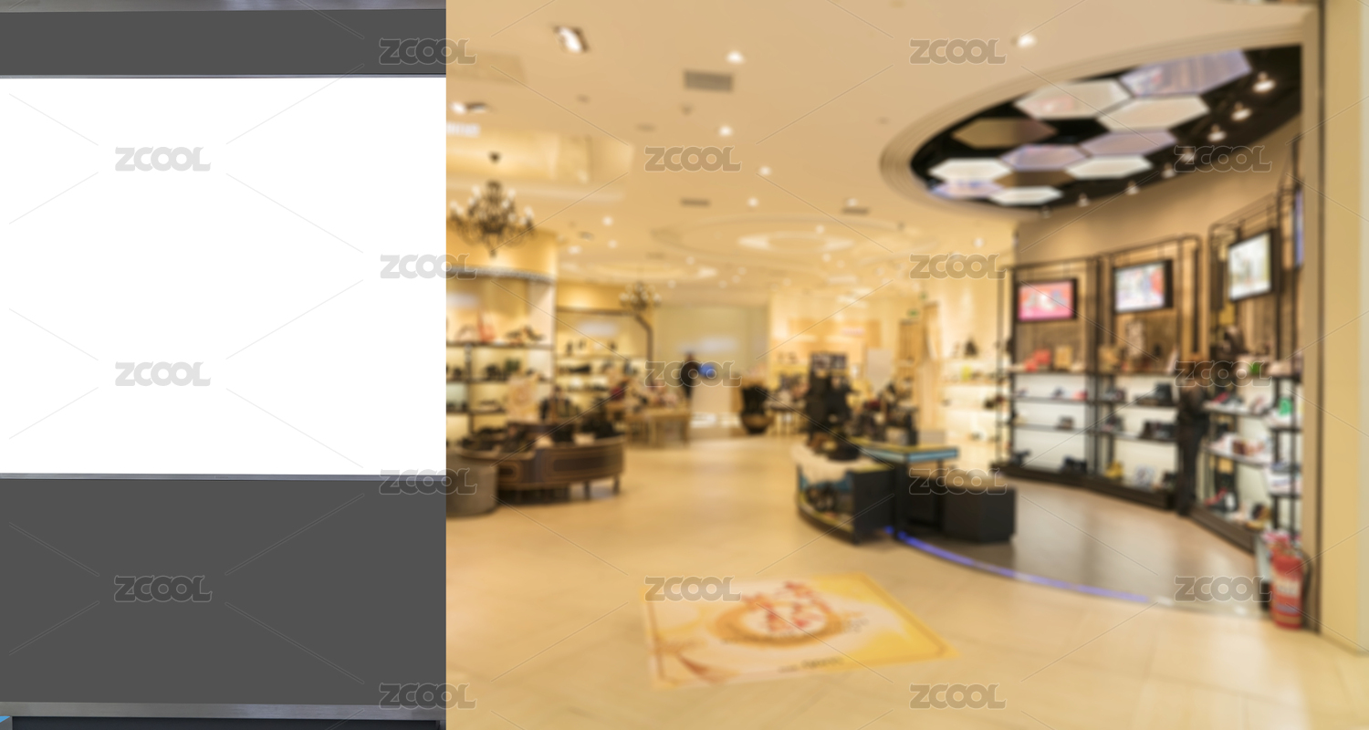 模糊的商場(chǎng)店鋪內(nèi)景和空白的燈箱廣告