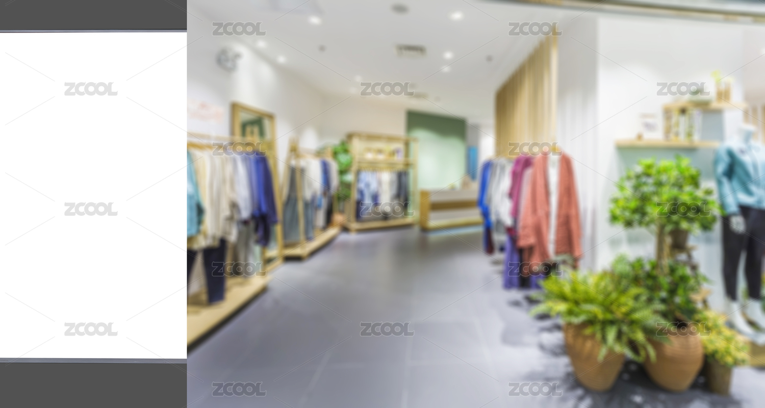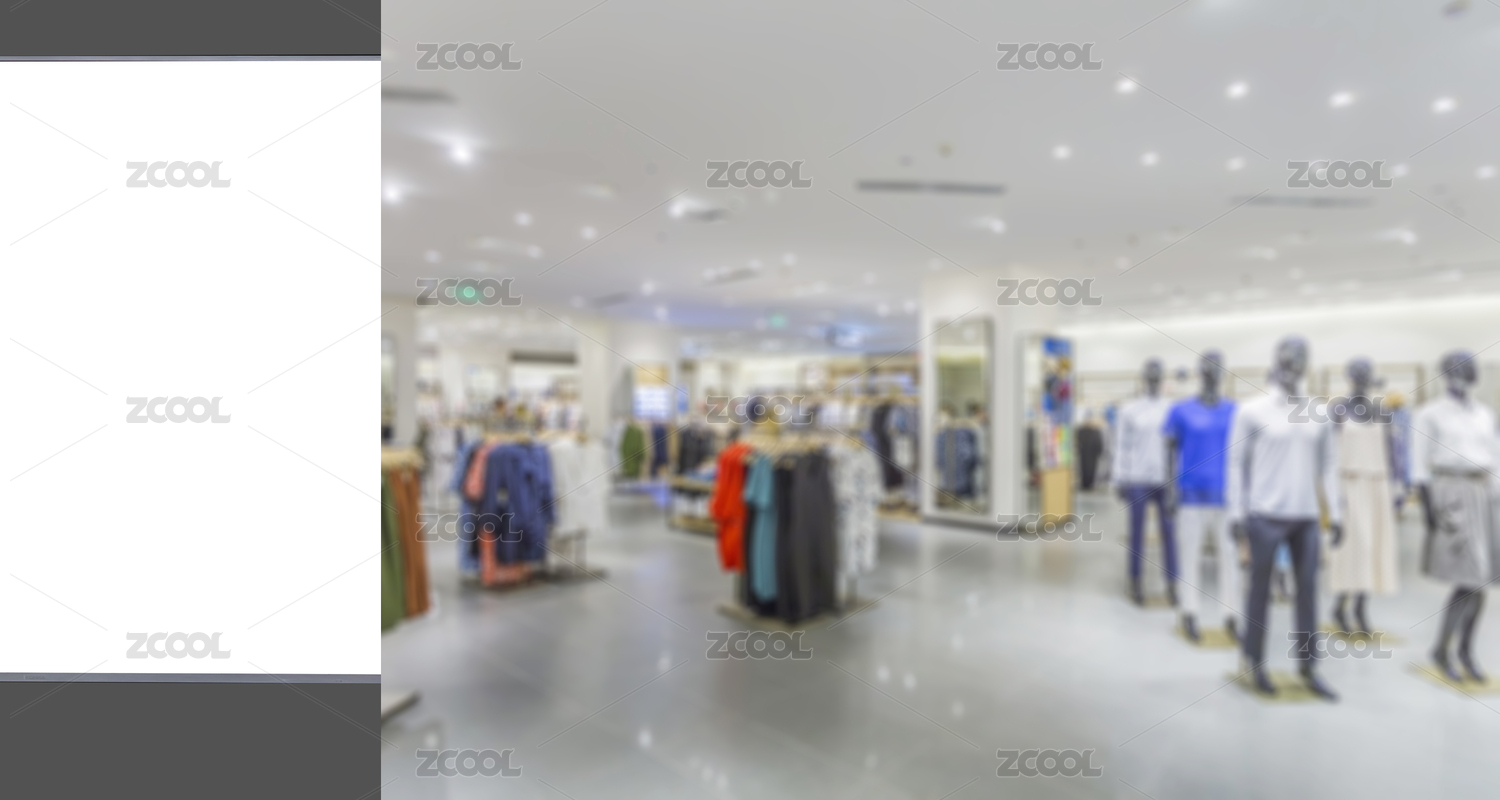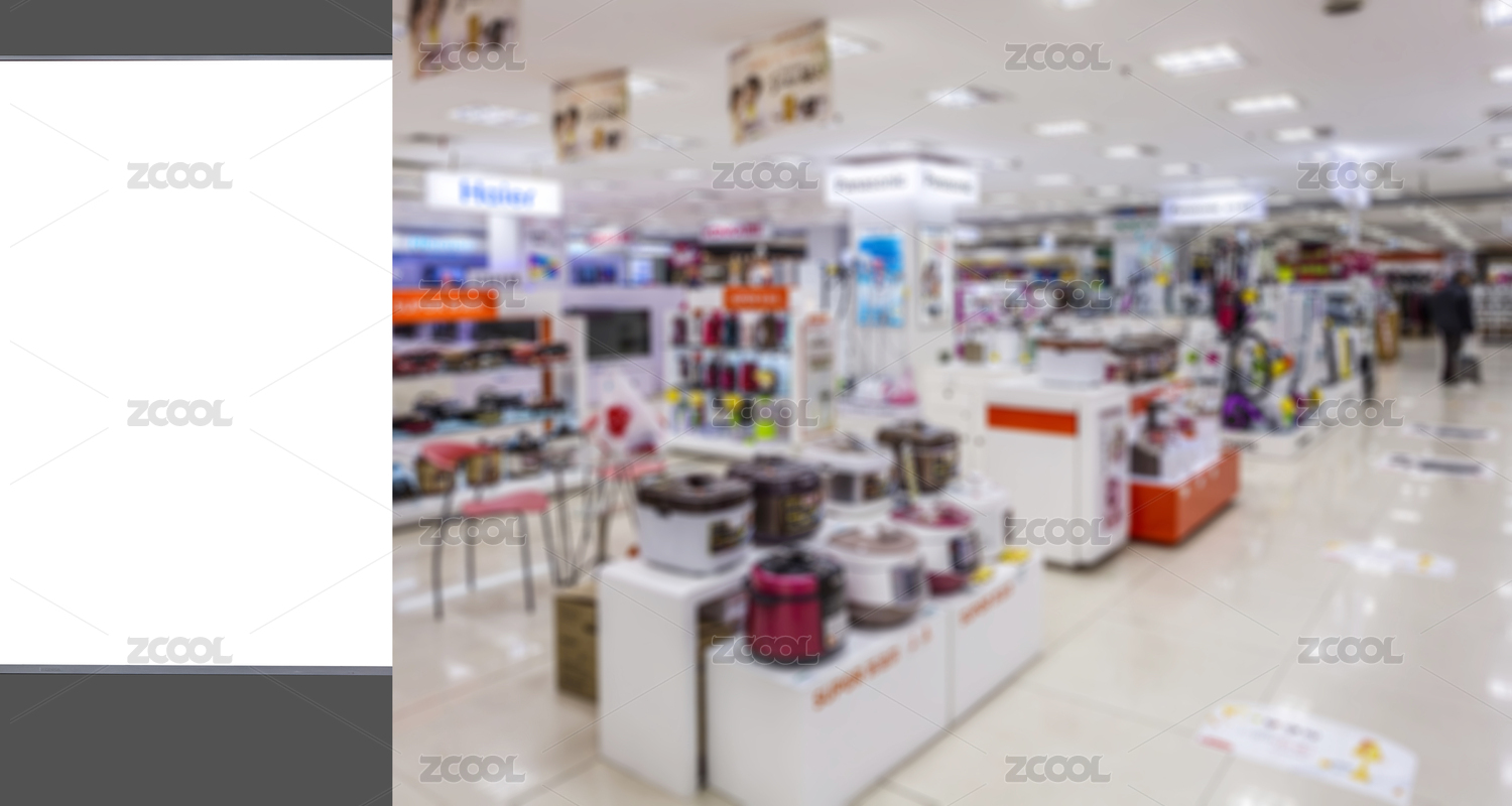 模糊的商場(chǎng)店鋪內(nèi)景和空白的燈箱廣告