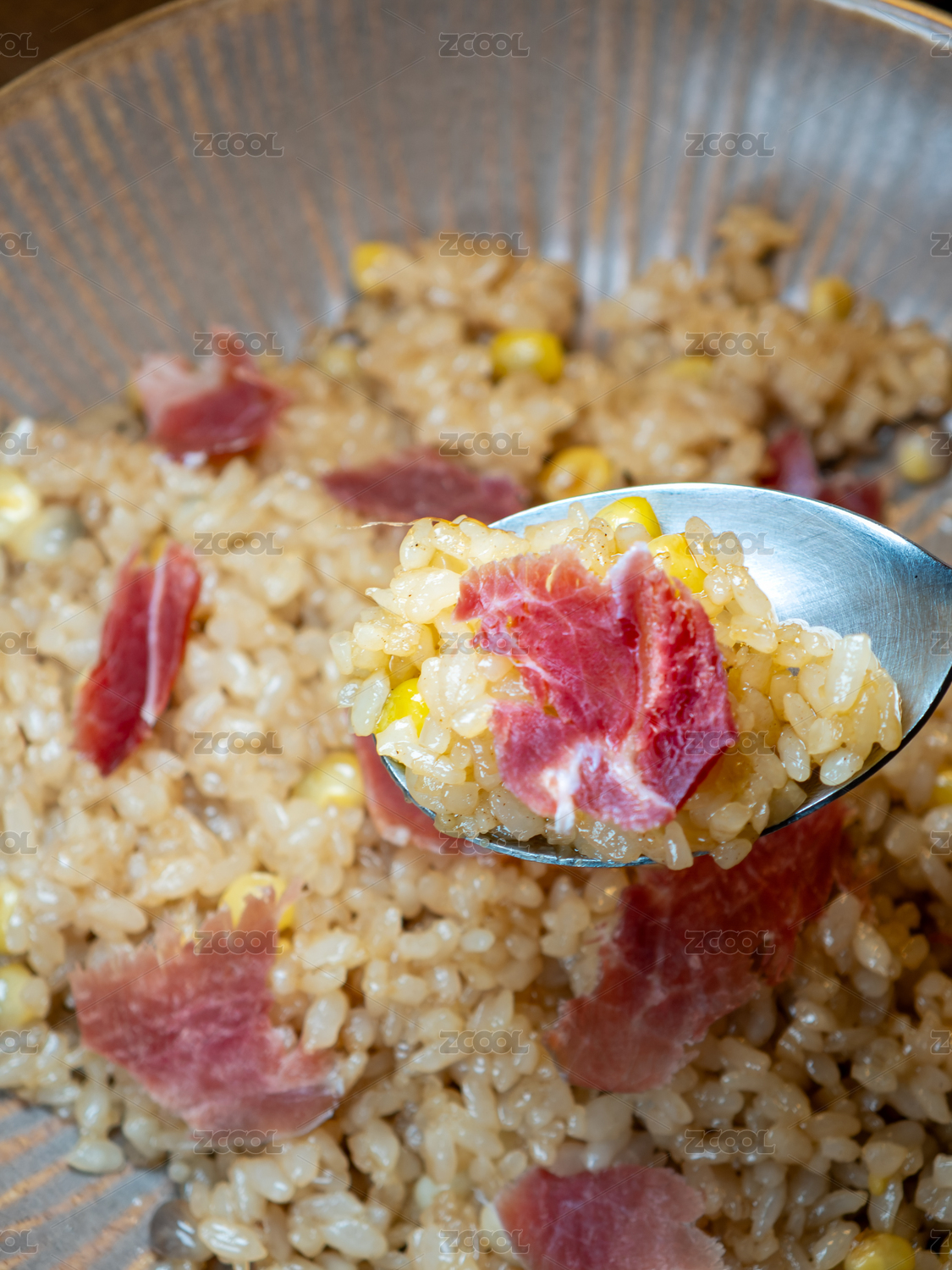 搭配帕爾瑪火腿和甜玉米粒意式燴飯