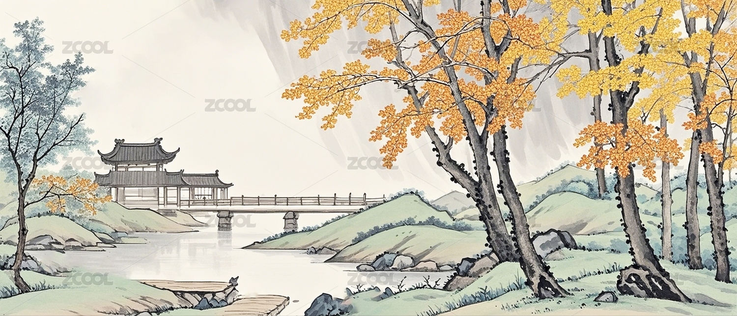 秋天寫意水墨風(fēng)景畫