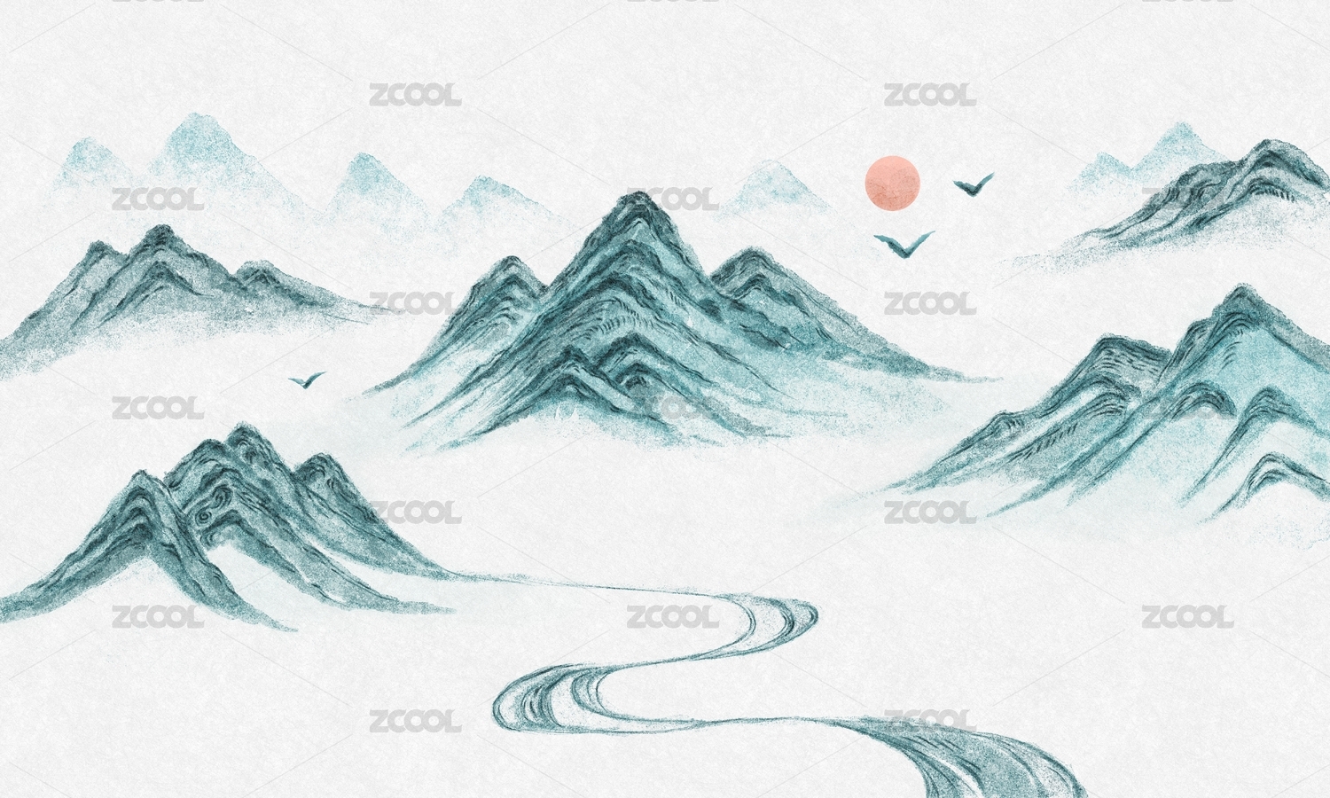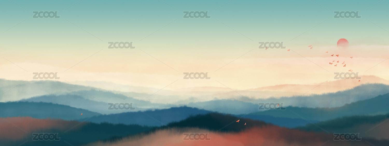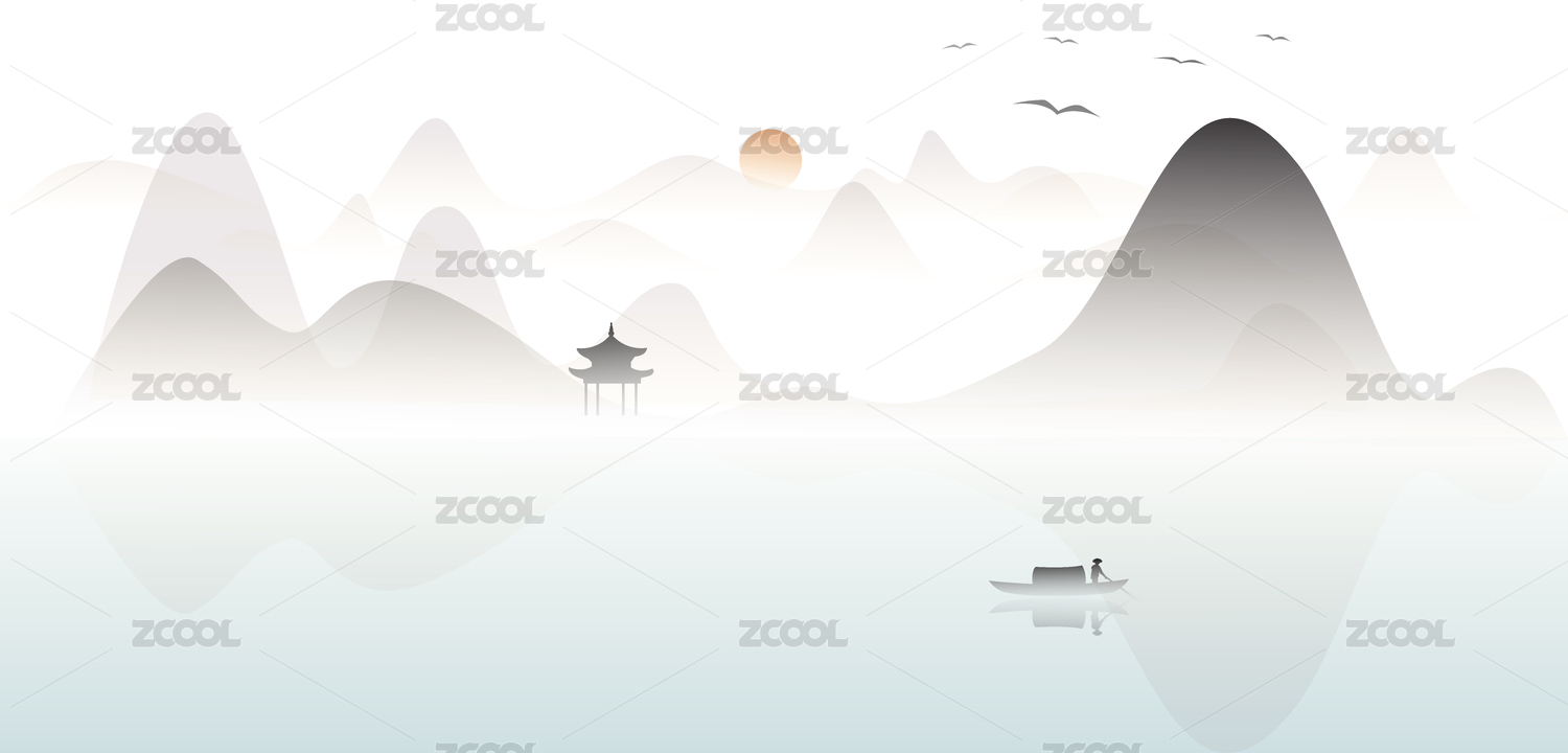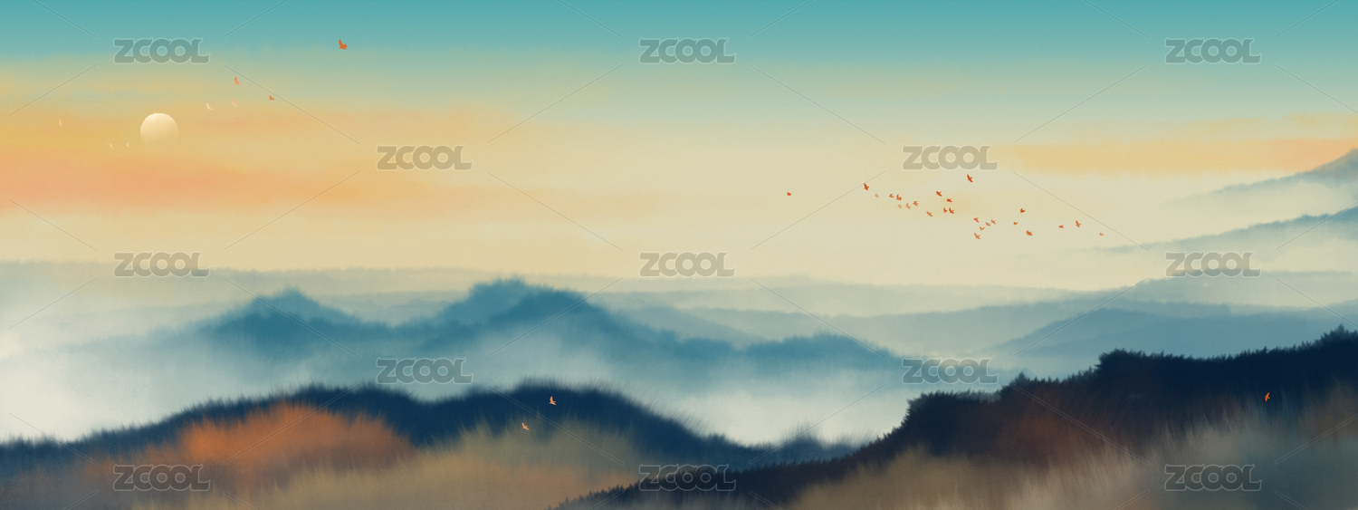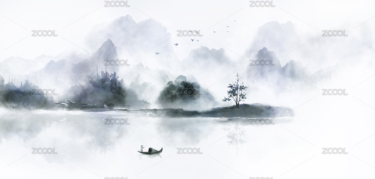 意境水墨水彩山水風(fēng)景畫背景