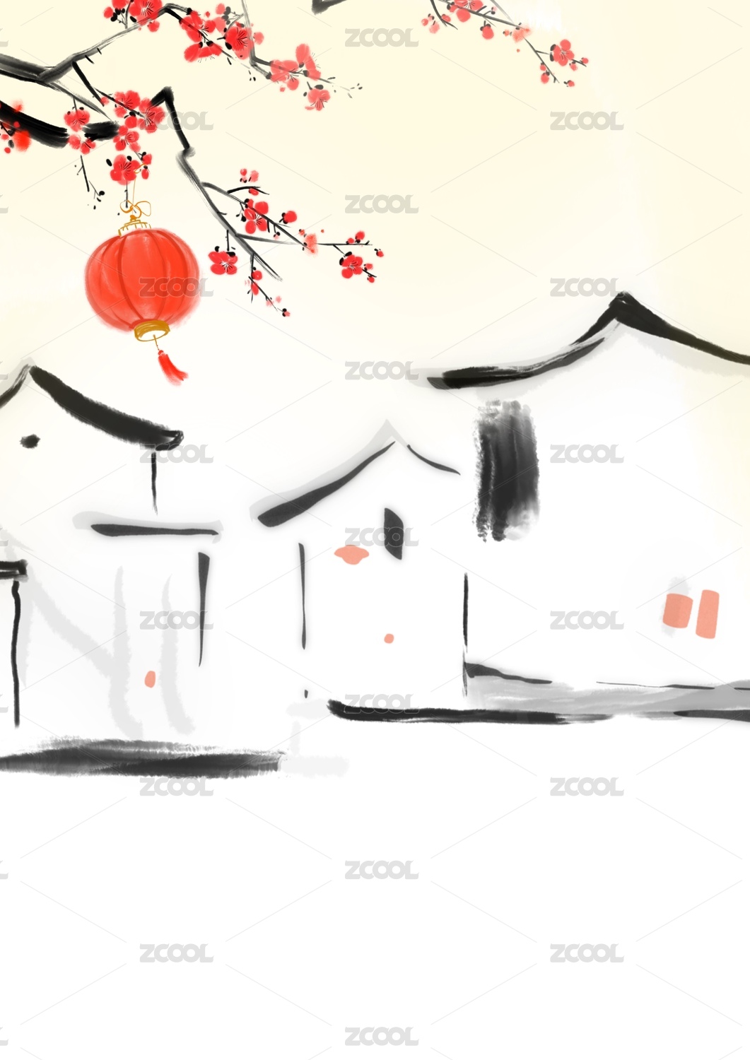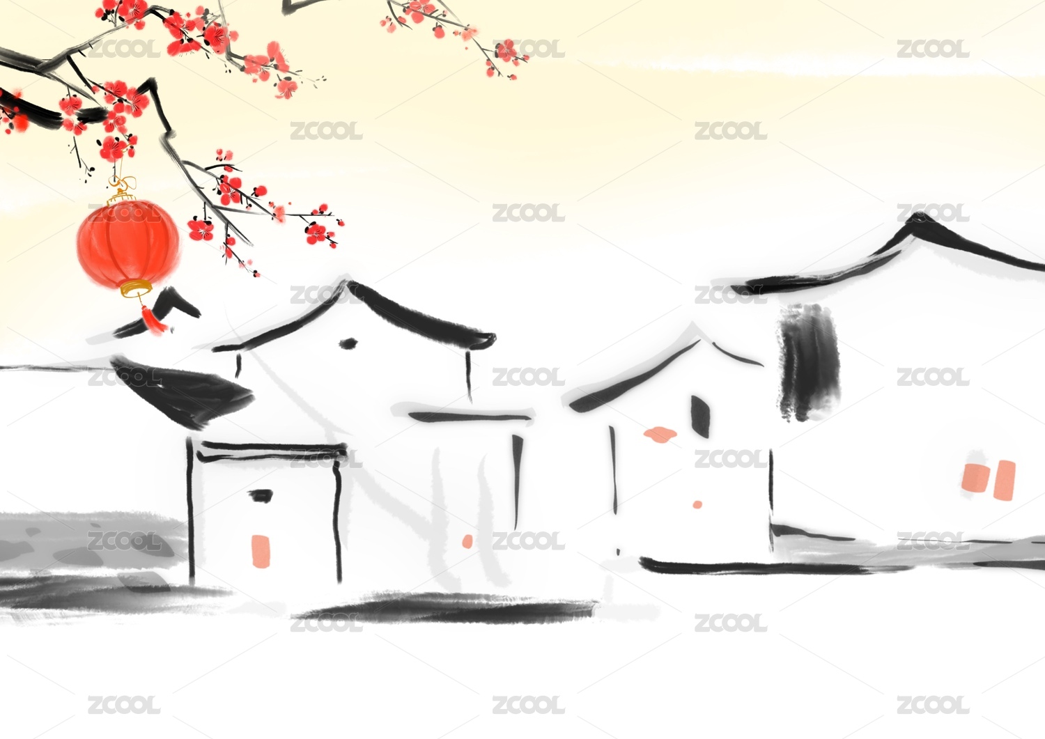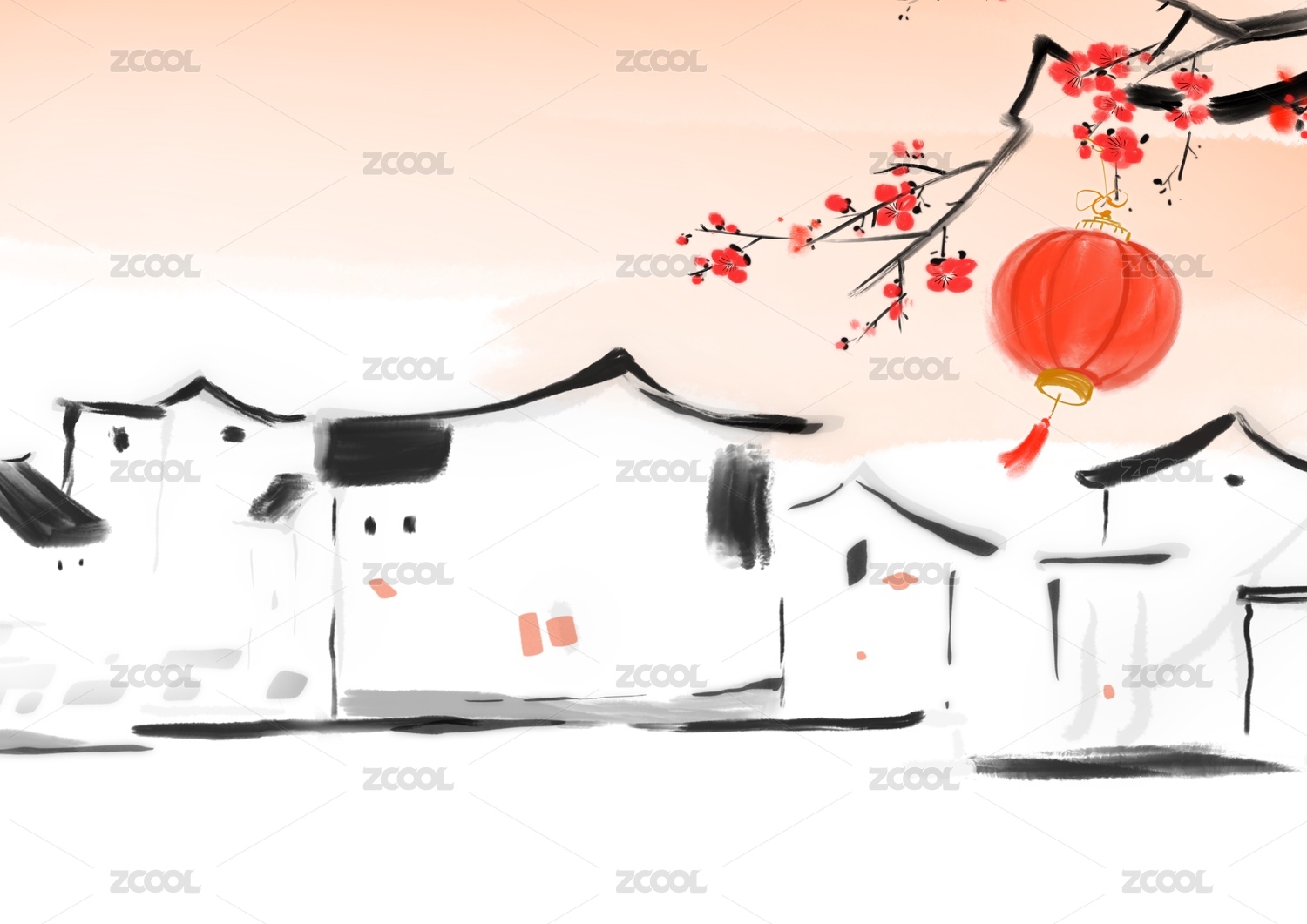 春季江南故鄉(xiāng)春節(jié)水墨風(fēng)景畫