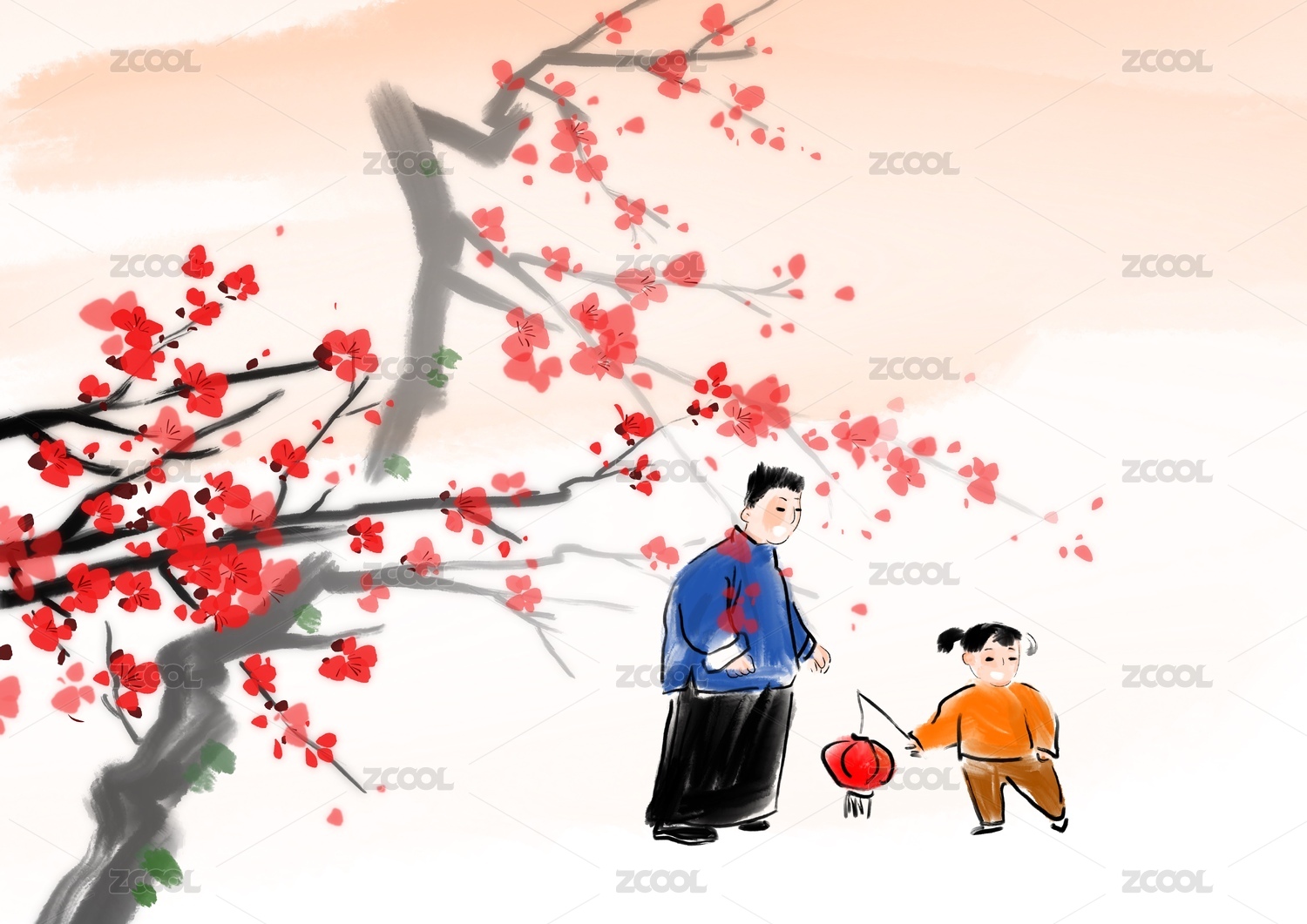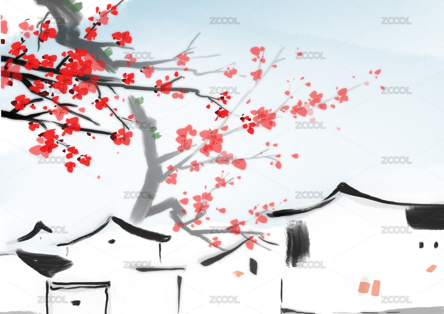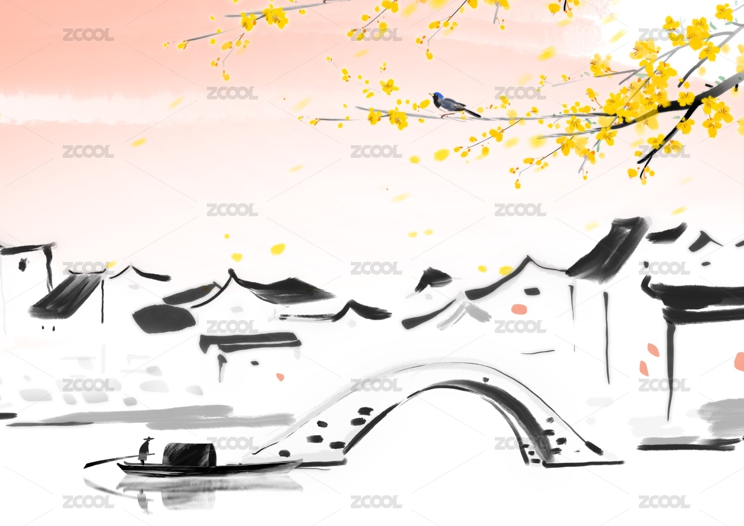 春季江南故鄉(xiāng)春節(jié)水墨風(fēng)景畫