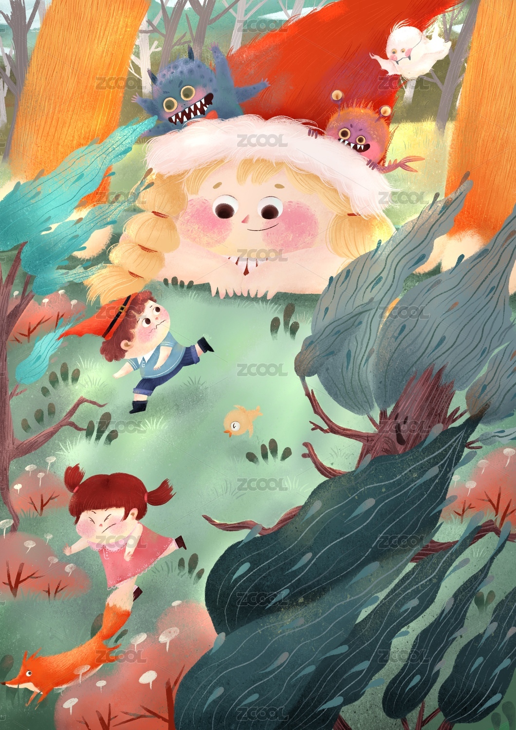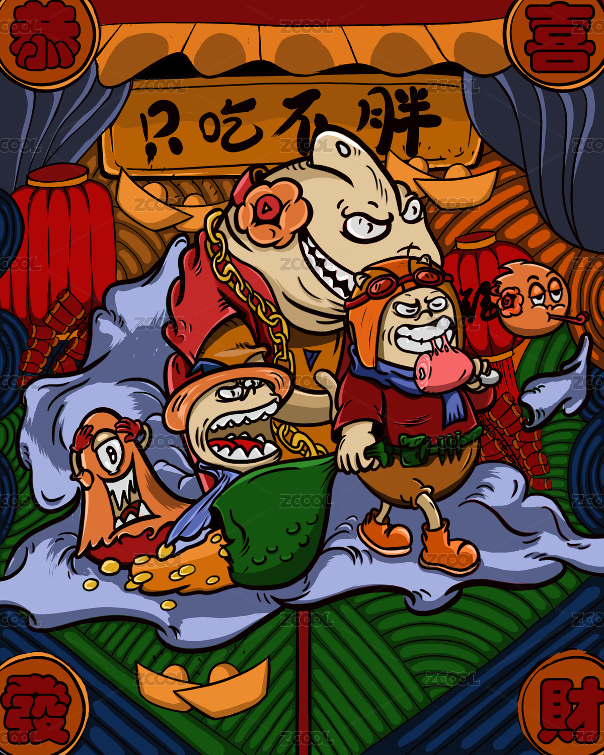 手繪中國(guó)風(fēng)小怪獸海報(bào)