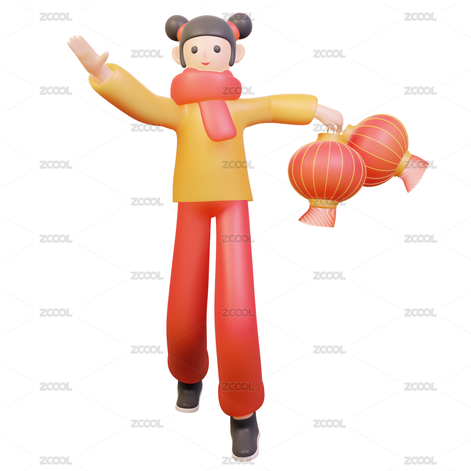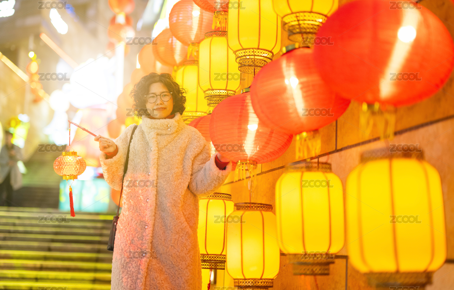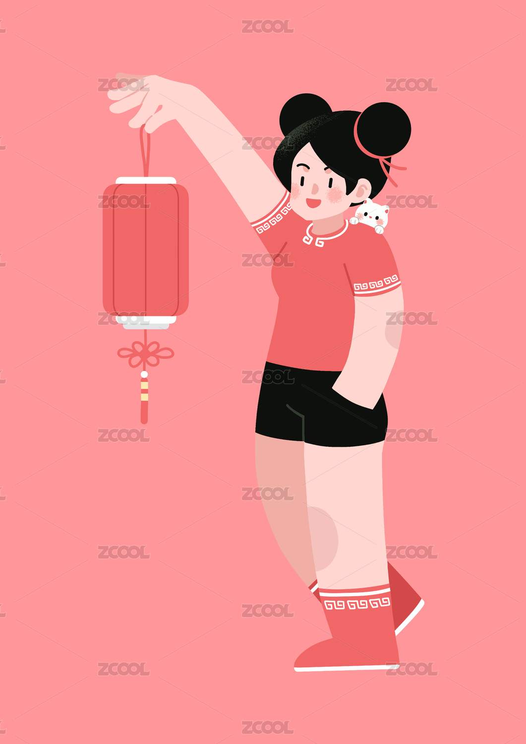 春節(jié)里手提燈籠的哪吒頭姑娘