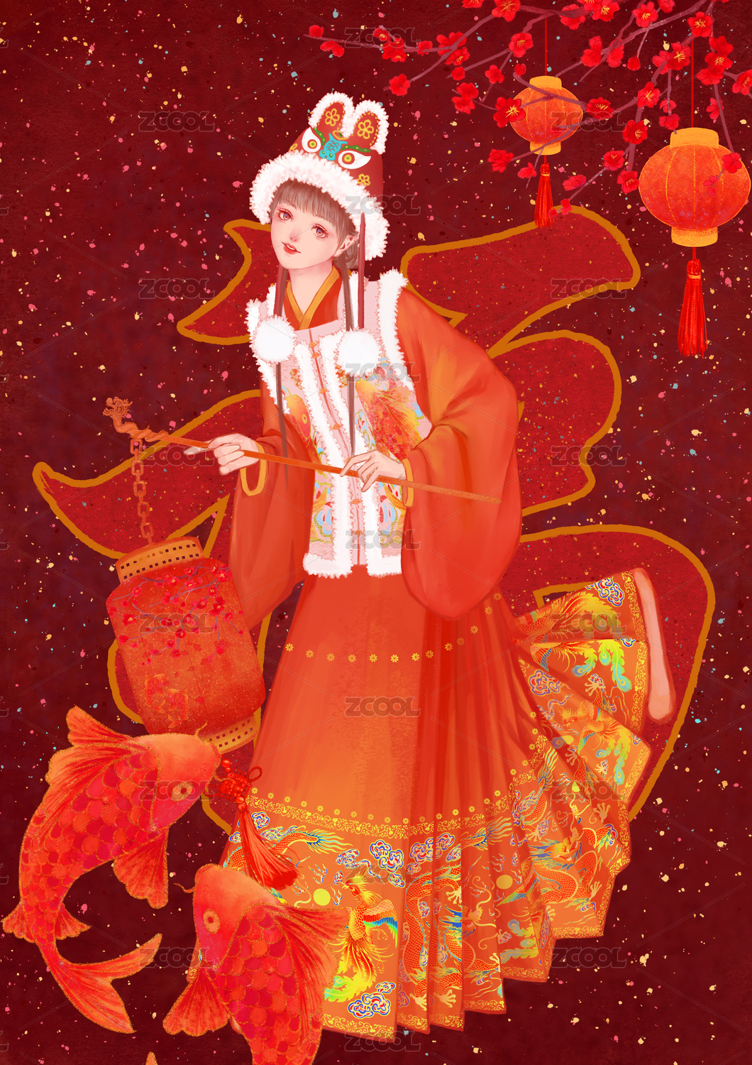 傳統(tǒng)節(jié)日新年春節(jié)古風(fēng)少女手提燈籠