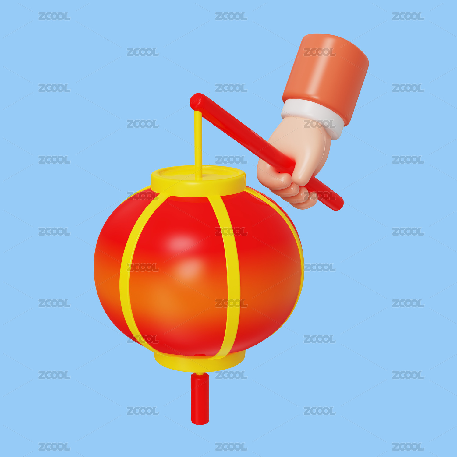 手提燈籠回家過年的青年春節(jié)春運(yùn)3d插畫