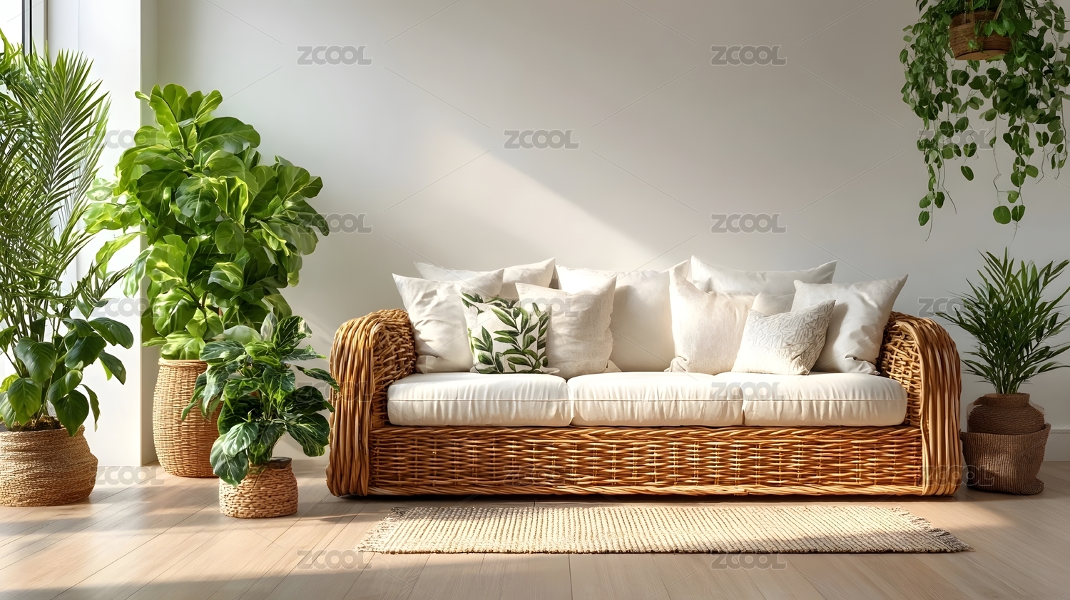 室內(nèi)藤編沙發(fā)與綠植