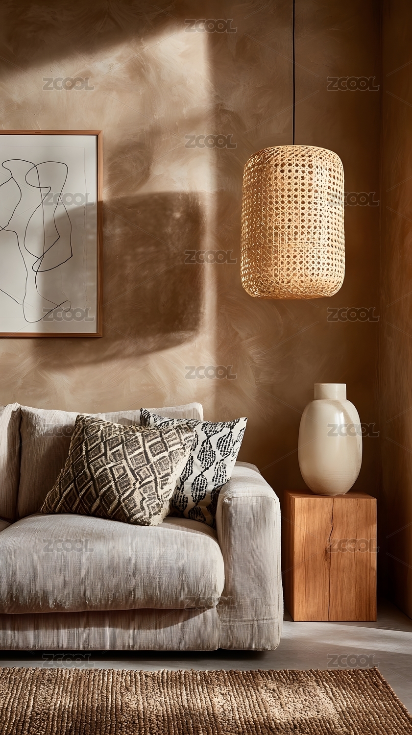 室內(nèi)沙發(fā)與藤編吊燈設(shè)計(jì)