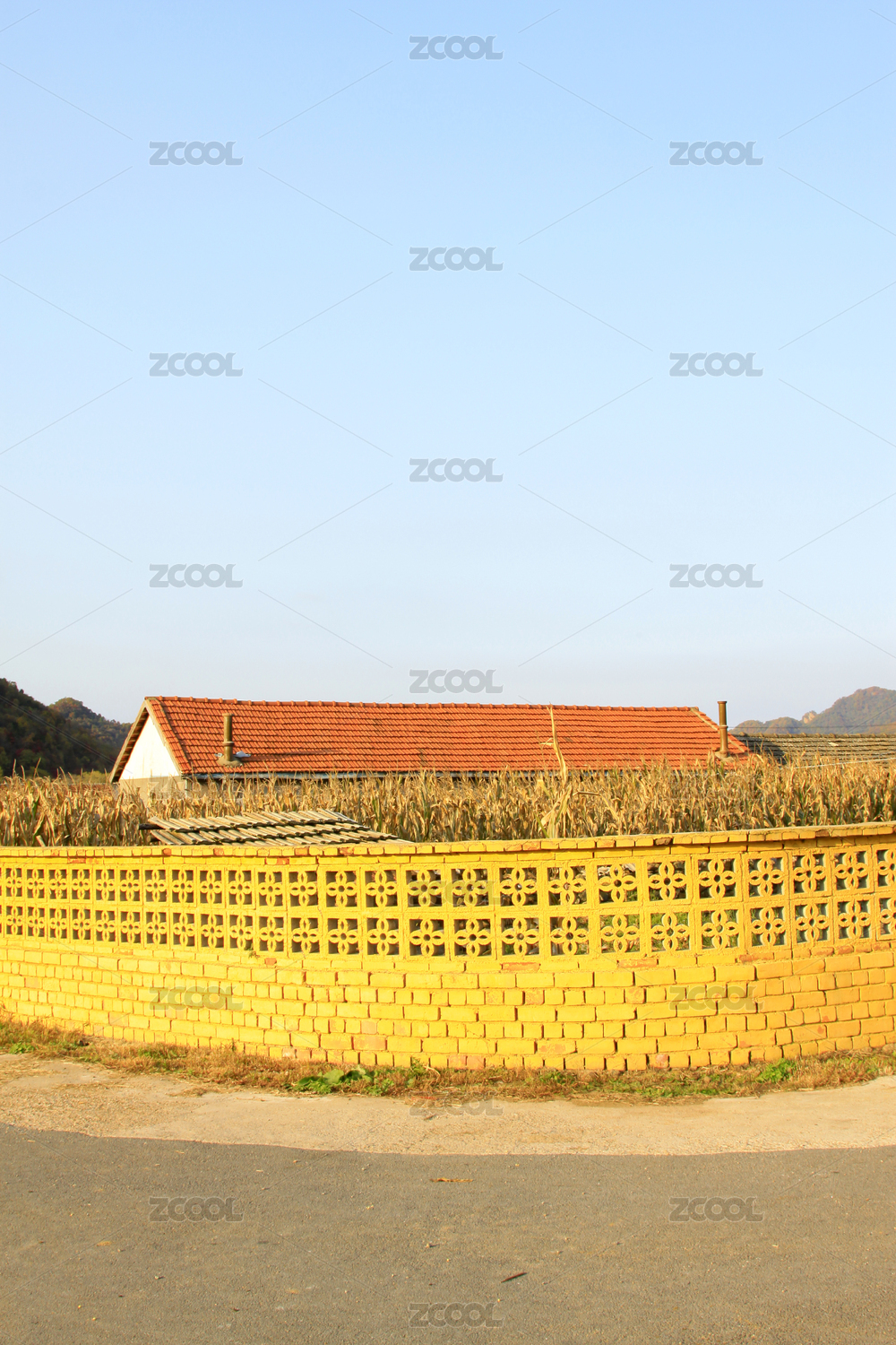 黃色磚墻圍起的鄉(xiāng)村農(nóng)舍