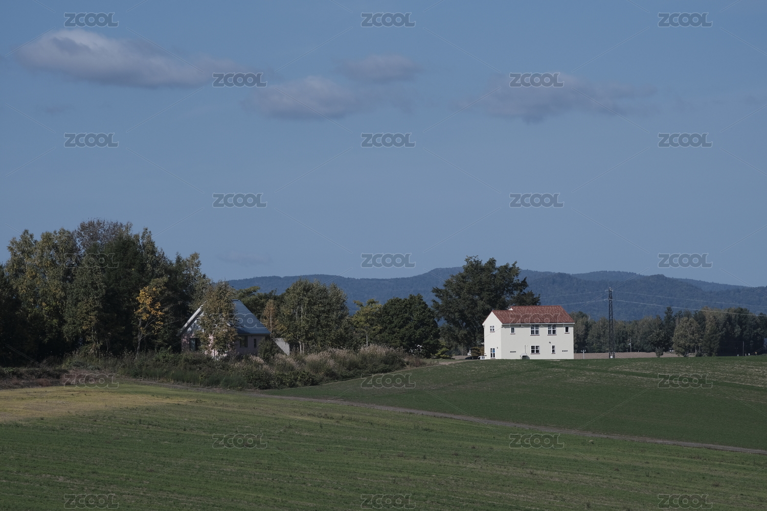 晴朗藍天下鄉(xiāng)村中的小農(nóng)舍