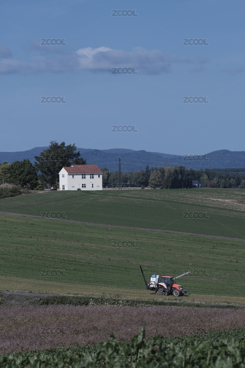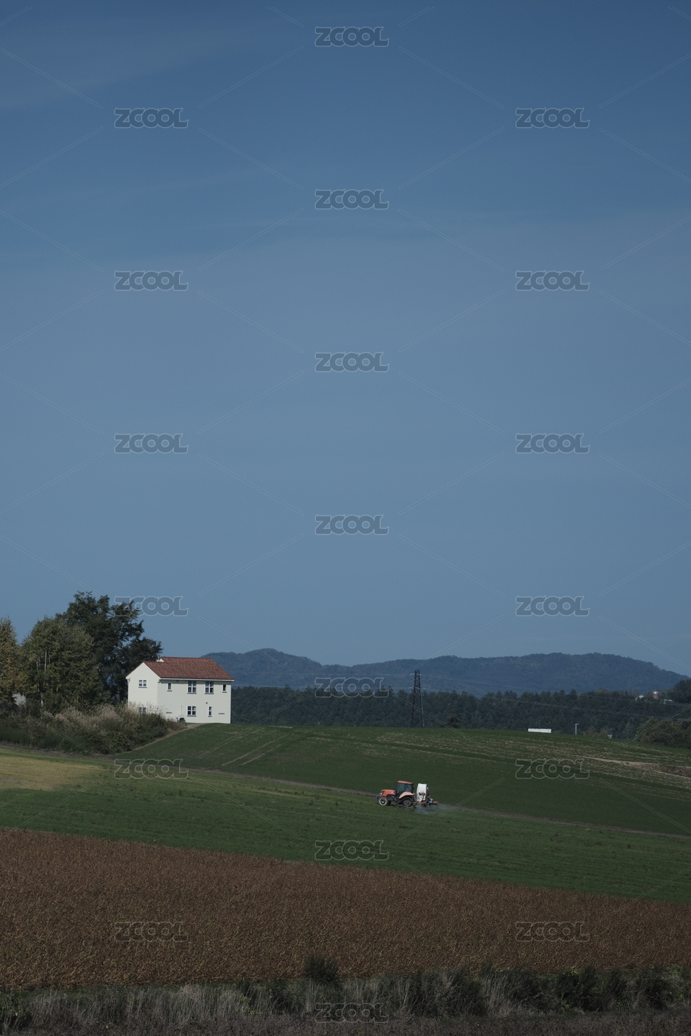 正在農(nóng)田里勞作的農(nóng)民與農(nóng)舍