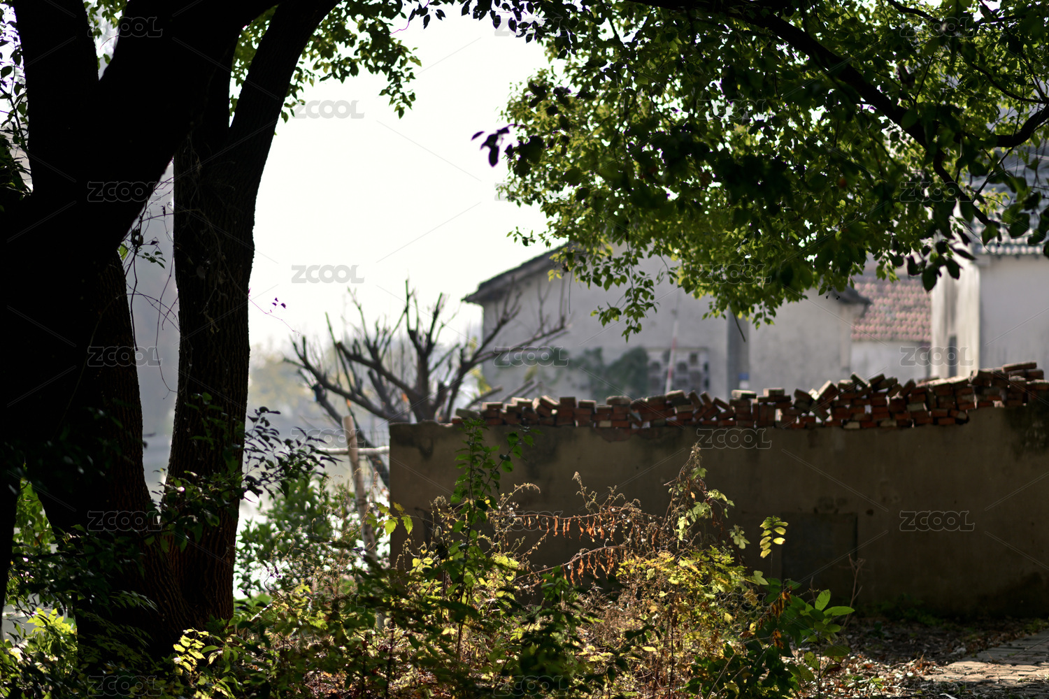 浙江嘉善逆光中的大樹與農(nóng)舍
