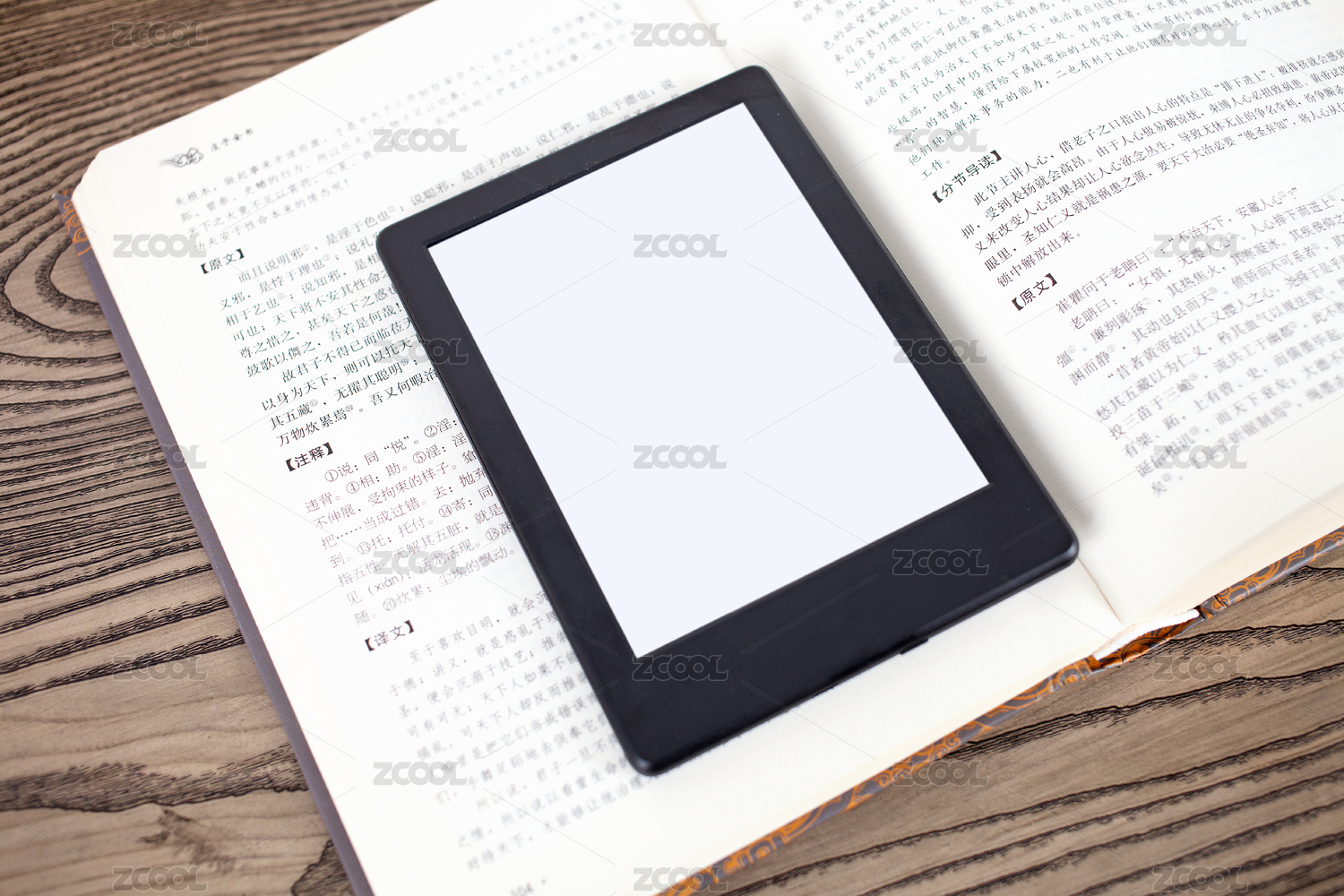 書(shū)和打開(kāi)的筆記本以及電子書(shū)放在白色桌面
